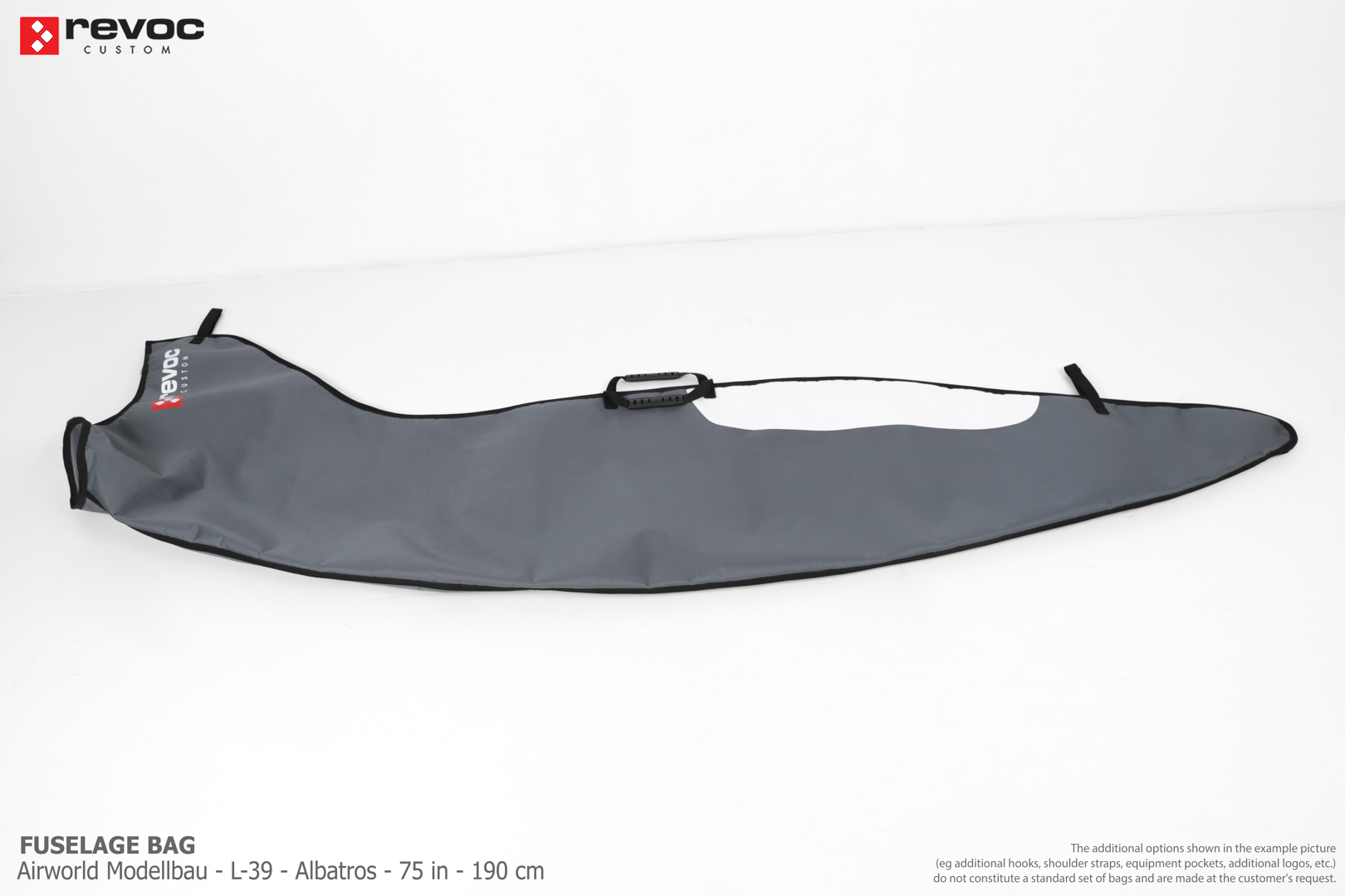 All REVOC RC bags are custom-made specifically for your model. Whether you have a jet, aerobatic aircraft RC, glider, or bi-plane RC model, our wing bags are completely tailored to fit the unique structure of your remote control planes. Each wing bag is crafted according to your individual preferences, parameters, and special requests. Please include any additional comments or wishes in the COMMENT section when placing your order, or email them directly to revoc@revoc.eu for a fully personalized wing bag RC experience.