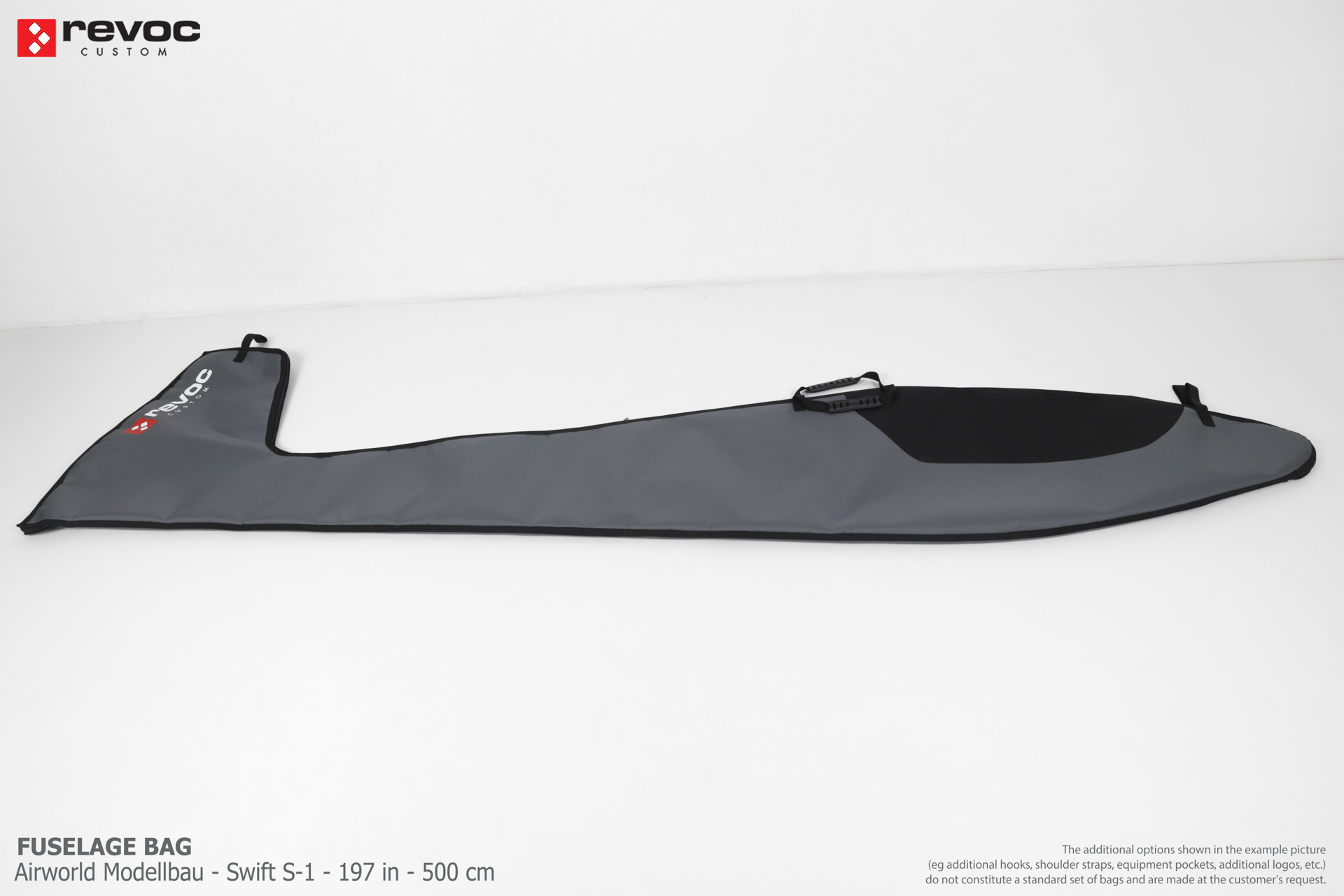 We make bags especially for you on your individual order. You can decide on the colors, choose a logo, put the model name on the cover, additional markings or choose a number of useful additional options. The custom color scheme which is a detailed reproduction of the models painting can be ordered individually - contact us for the offer: revoc@revoc.eu