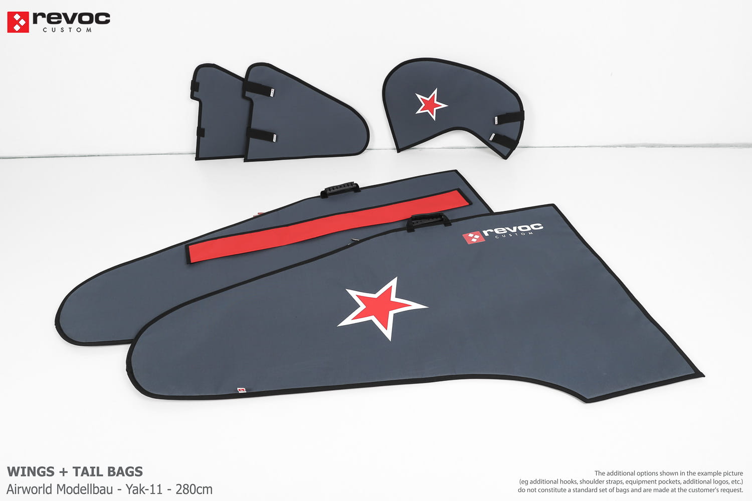 All REVOC bags are made especially for your model. They are completely tailored to the specific structure of your aircraft - regardless of whether it is a JET model, aerobatic model, glider or bi-plane model. Bags are made according to your comments, individual parameters and wishes. Please write your additional comments and wishes in the COMMENT section or send them directly to the e-mail revoc@revoc.eu after placing the order.