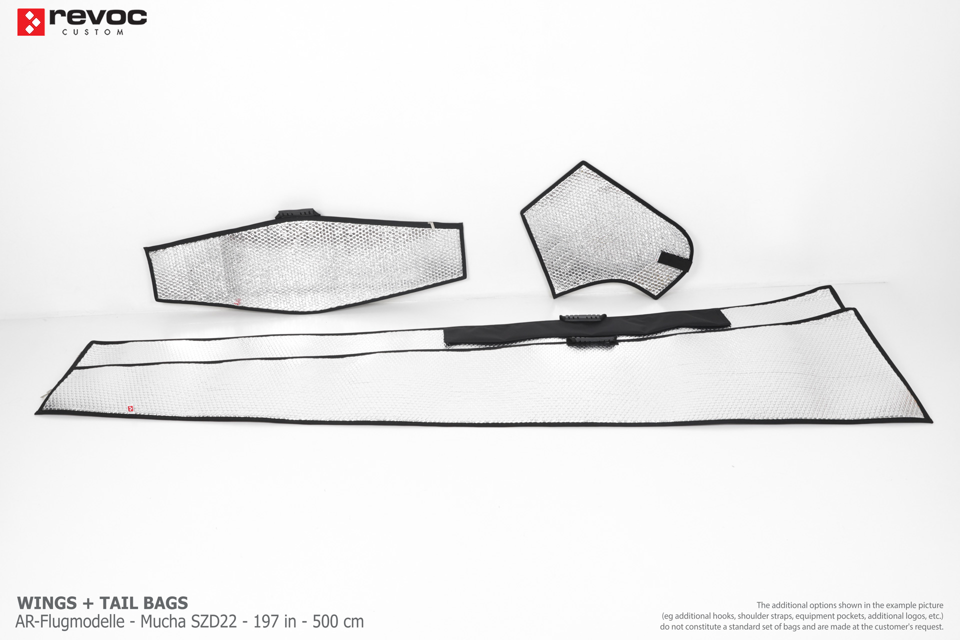All REVOC bags are made especially for your model. They are completely tailored to the specific structure of your aircraft - regardless of whether it is a JET model, aerobatic model, glider or bi-plane model. Bags are made according to your comments, individual parameters and wishes. Please write your additional comments and wishes in the COMMENT section or send them directly to the e-mail revoc@revoc.eu after placing the order.