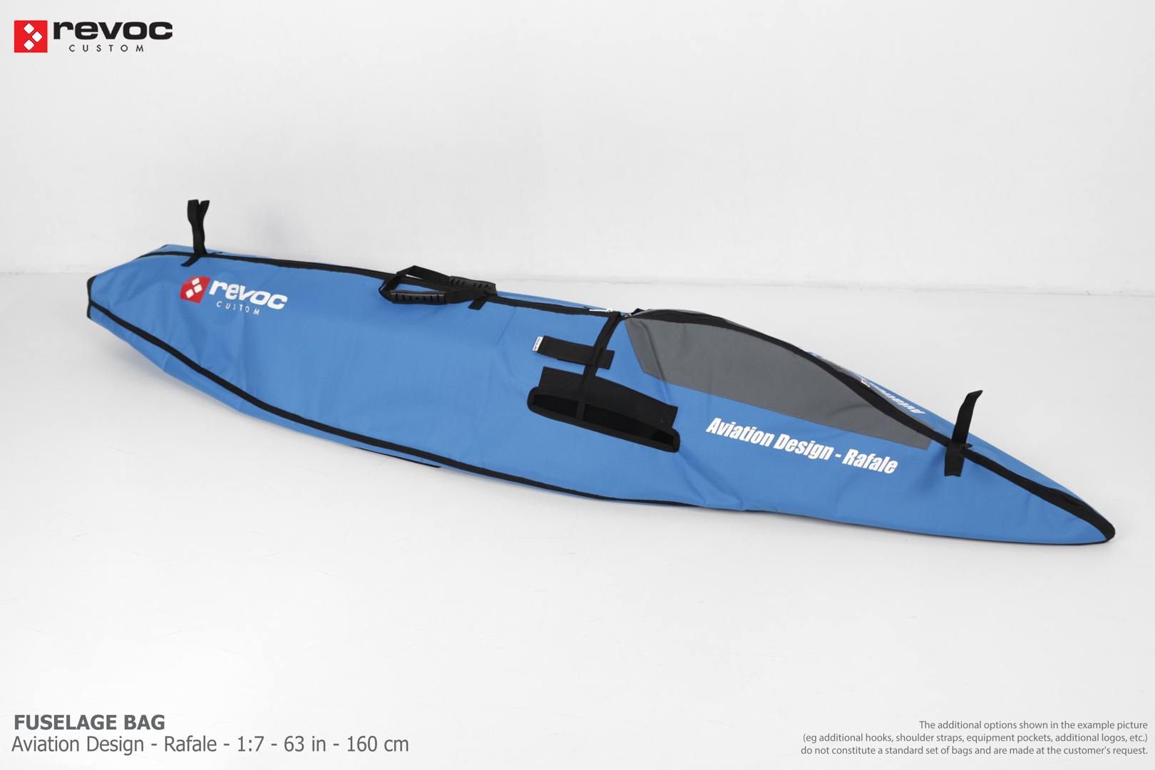 We make bags especially for you on your individual order. You can decide on the colors, choose a logo, put the model name on the cover, additional markings or choose a number of useful additional options. The custom color scheme which is a detailed reproduction of the models painting can be ordered individually - contact us for the offer: revoc@revoc.eu