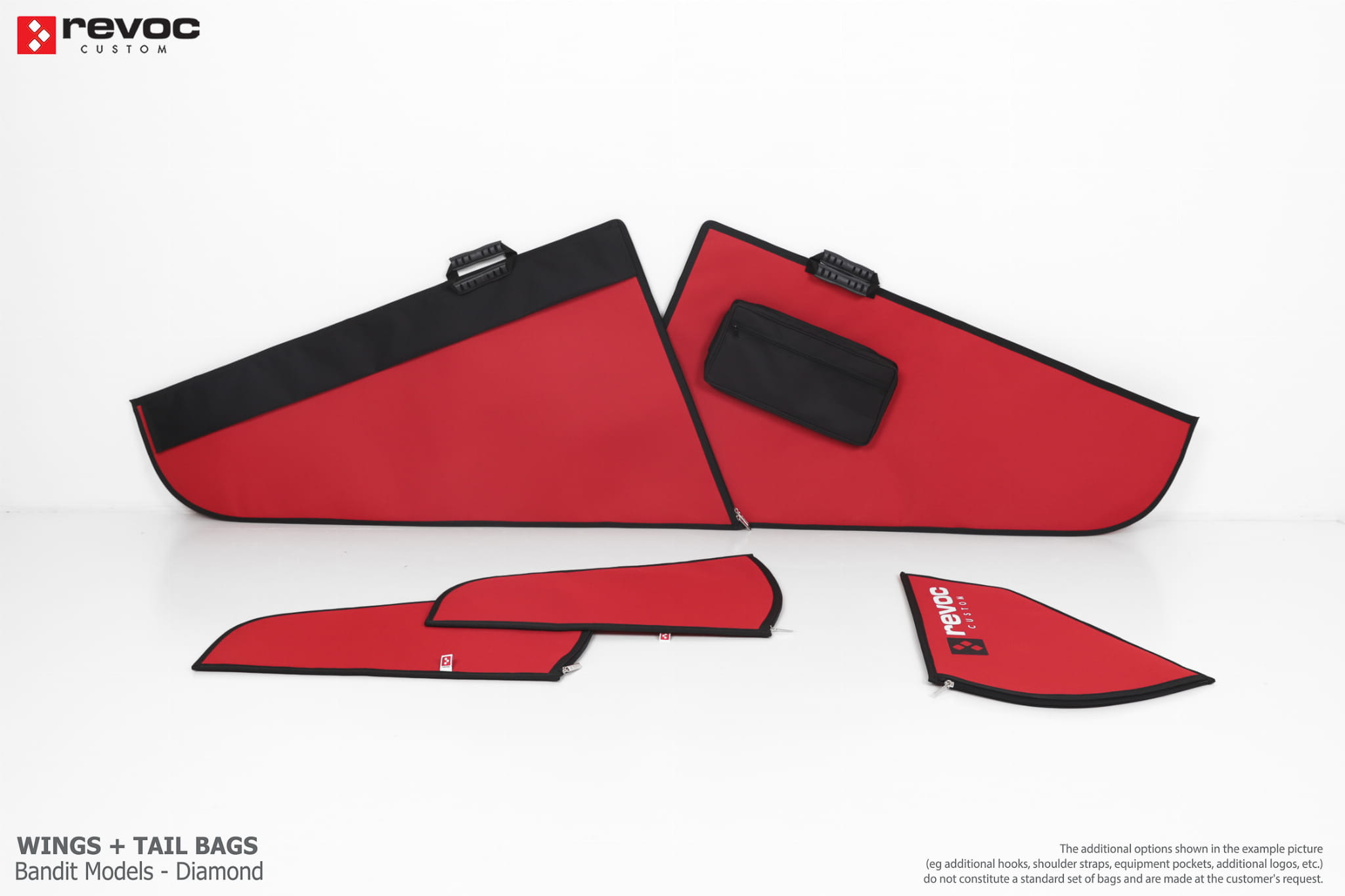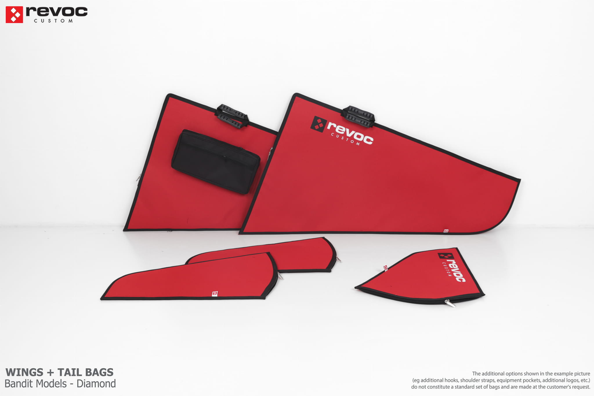 We make bags especially for you on your individual order. You can decide on the colors, choose a logo, put the model name on the cover, additional markings or choose a number of useful additional options. The custom color scheme which is a detailed reproduction of the model's painting can be ordered individually - contact us for the offer: revoc@revoc.eu