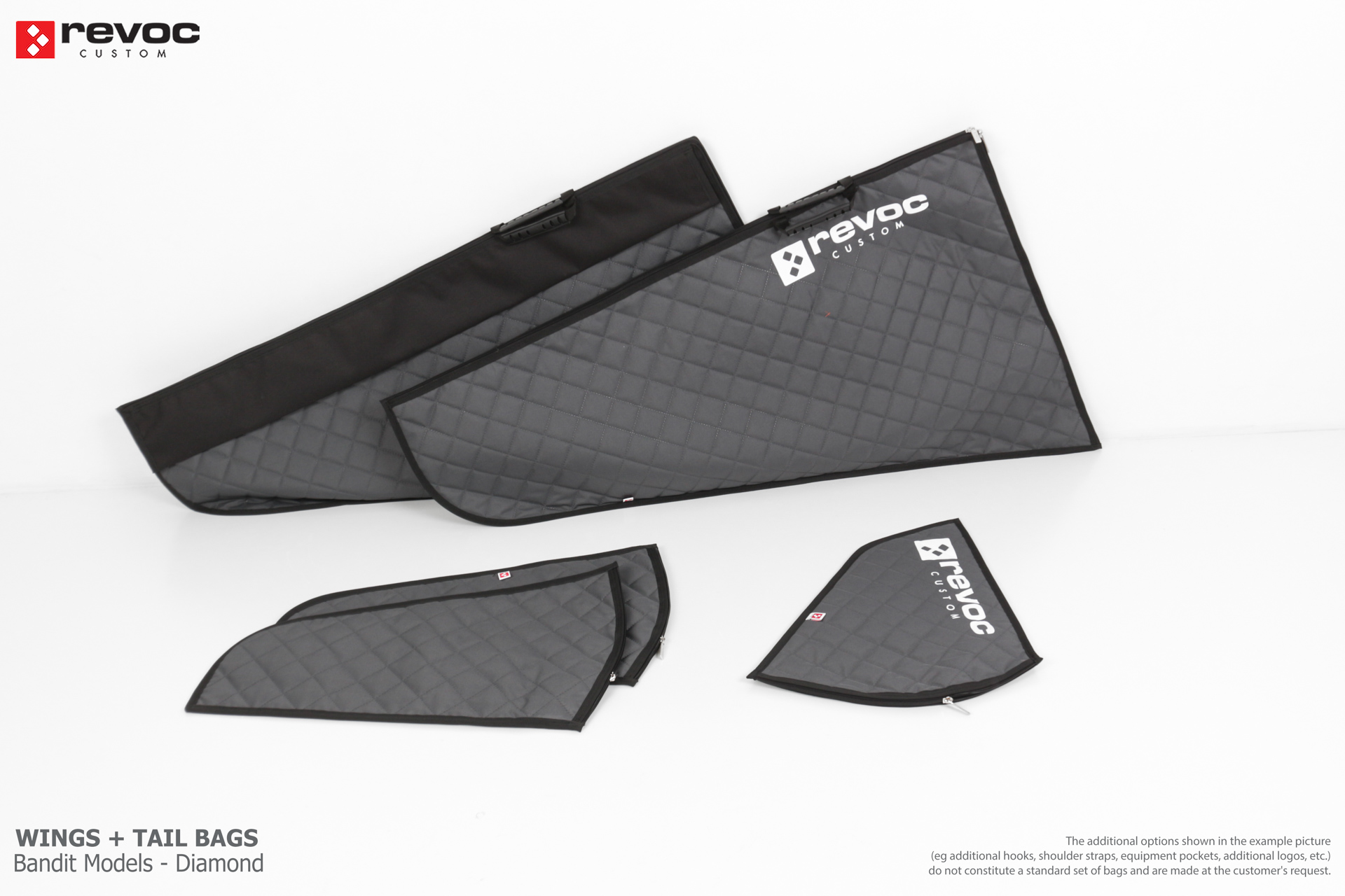 We create custom wing bags especially for you based on your individual order. You can select the colors, add a logo, include the model name on the cover, or choose additional markings and useful options.
