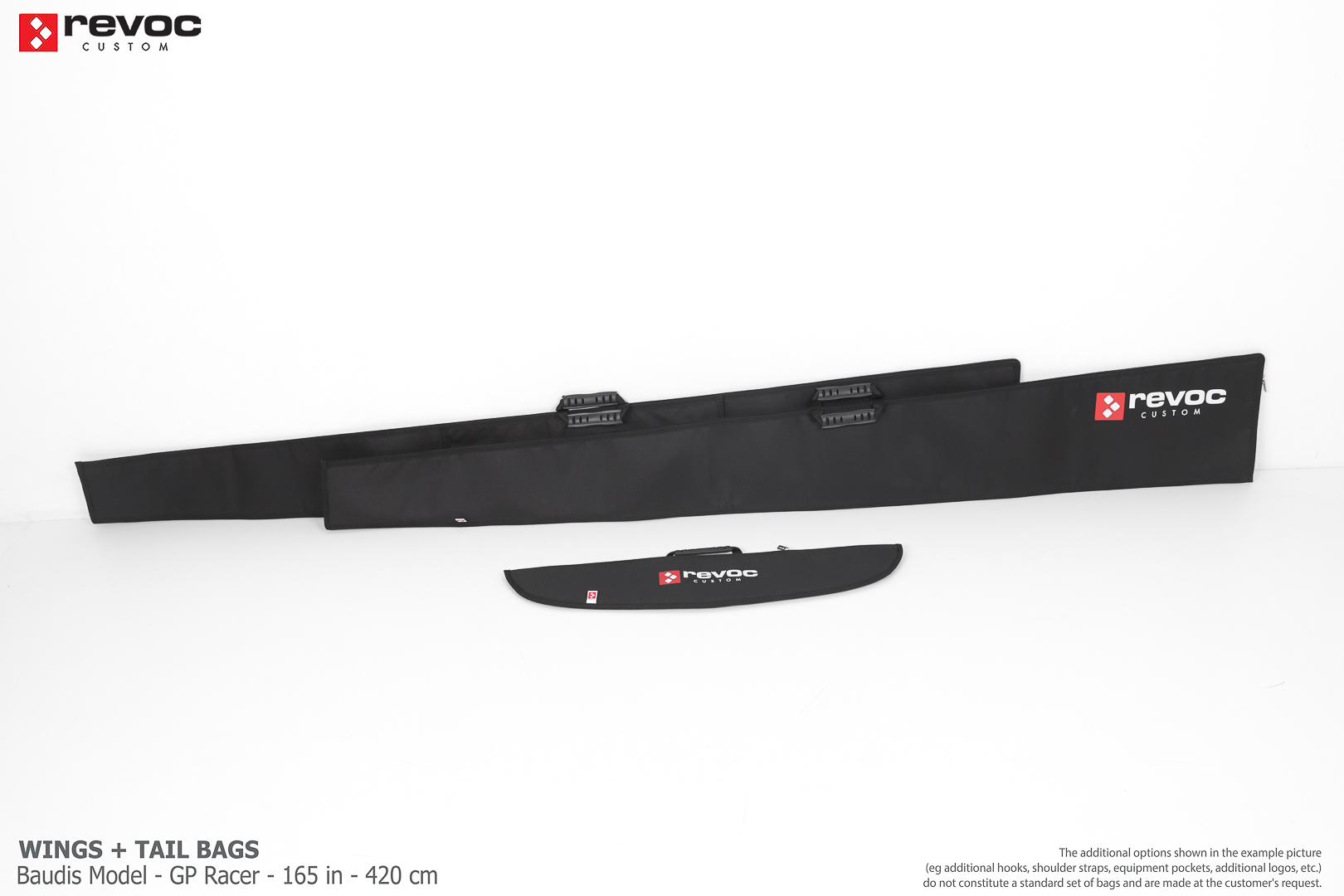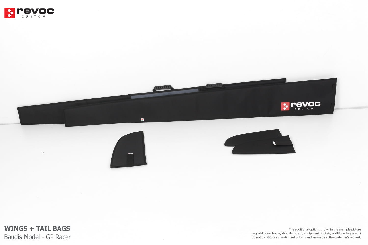 We make bags especially for you on your individual order. You can decide on the colors, choose a logo, put the model name on the cover, additional markings or choose a number of useful additional options. The custom color scheme which is a detailed reproduction of the model's painting can be ordered individually - contact us for the offer: revoc@revoc.eu