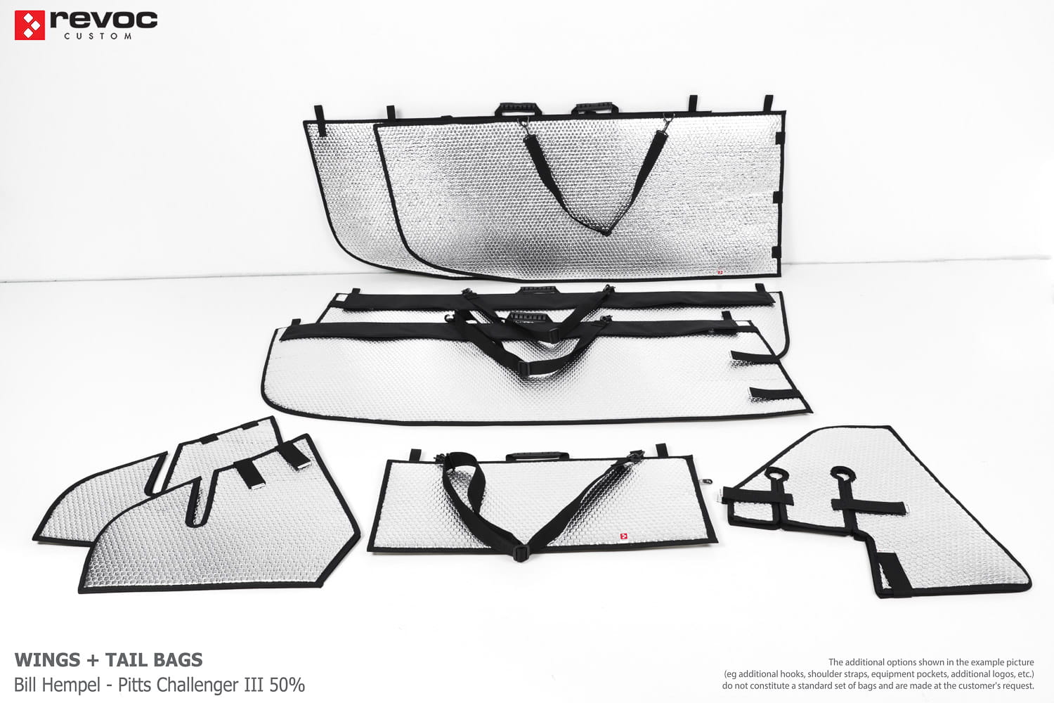 All REVOC bags are made especially for your model. They are completely tailored to the specific structure of your aircraft - regardless of whether it is a JET model, aerobatic model, glider or bi-plane model. Bags are made according to your comments, individual parameters and wishes. Please write your additional comments and wishes in the COMMENT section or send them directly to the e-mail revoc@revoc.eu after placing the order.