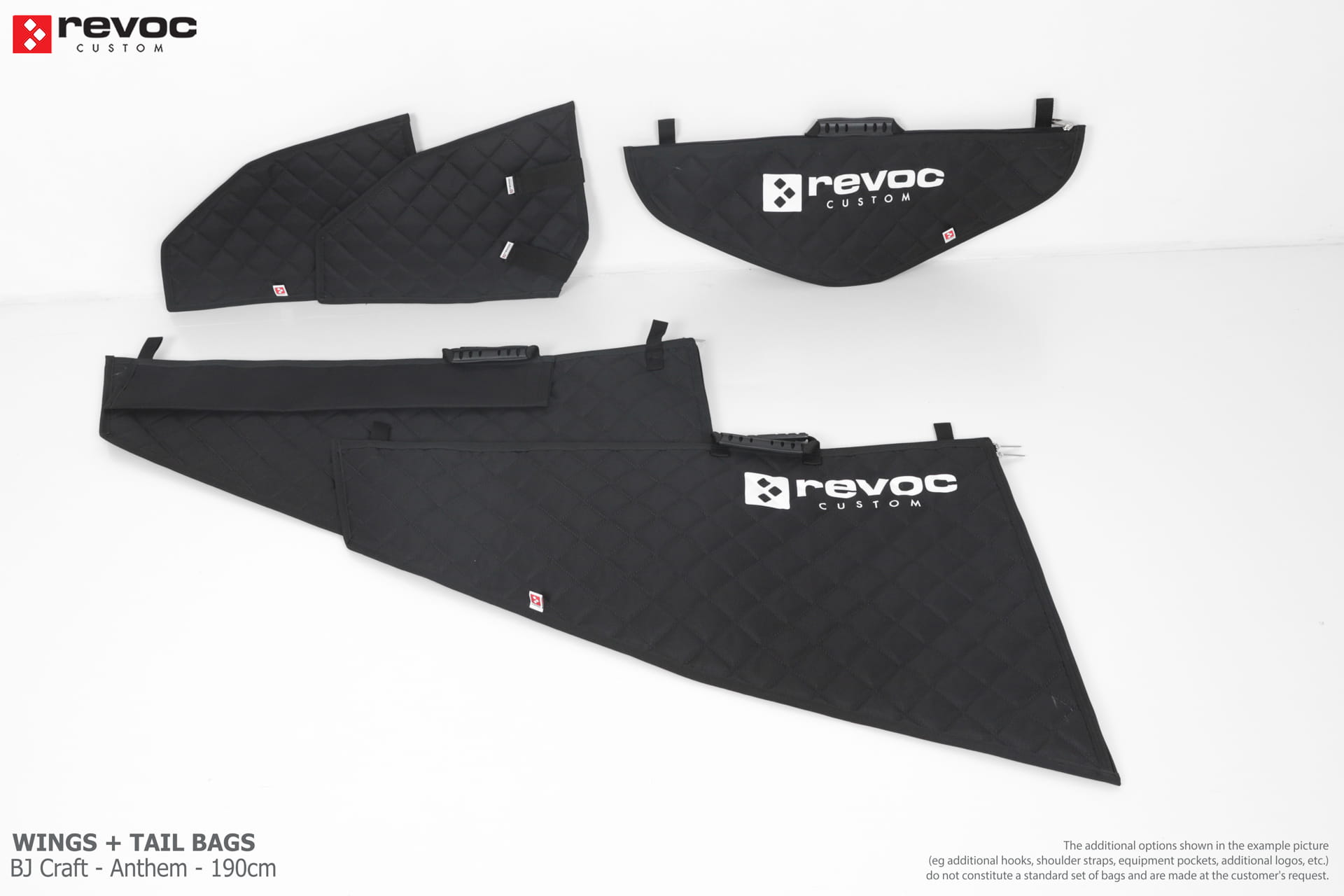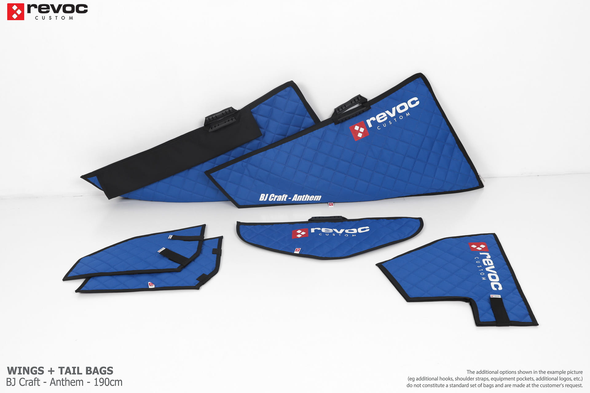 We create custom wing bags especially for you based on your individual order. You can select the colors, add a logo, include the model name on the cover, or choose additional markings and useful options.