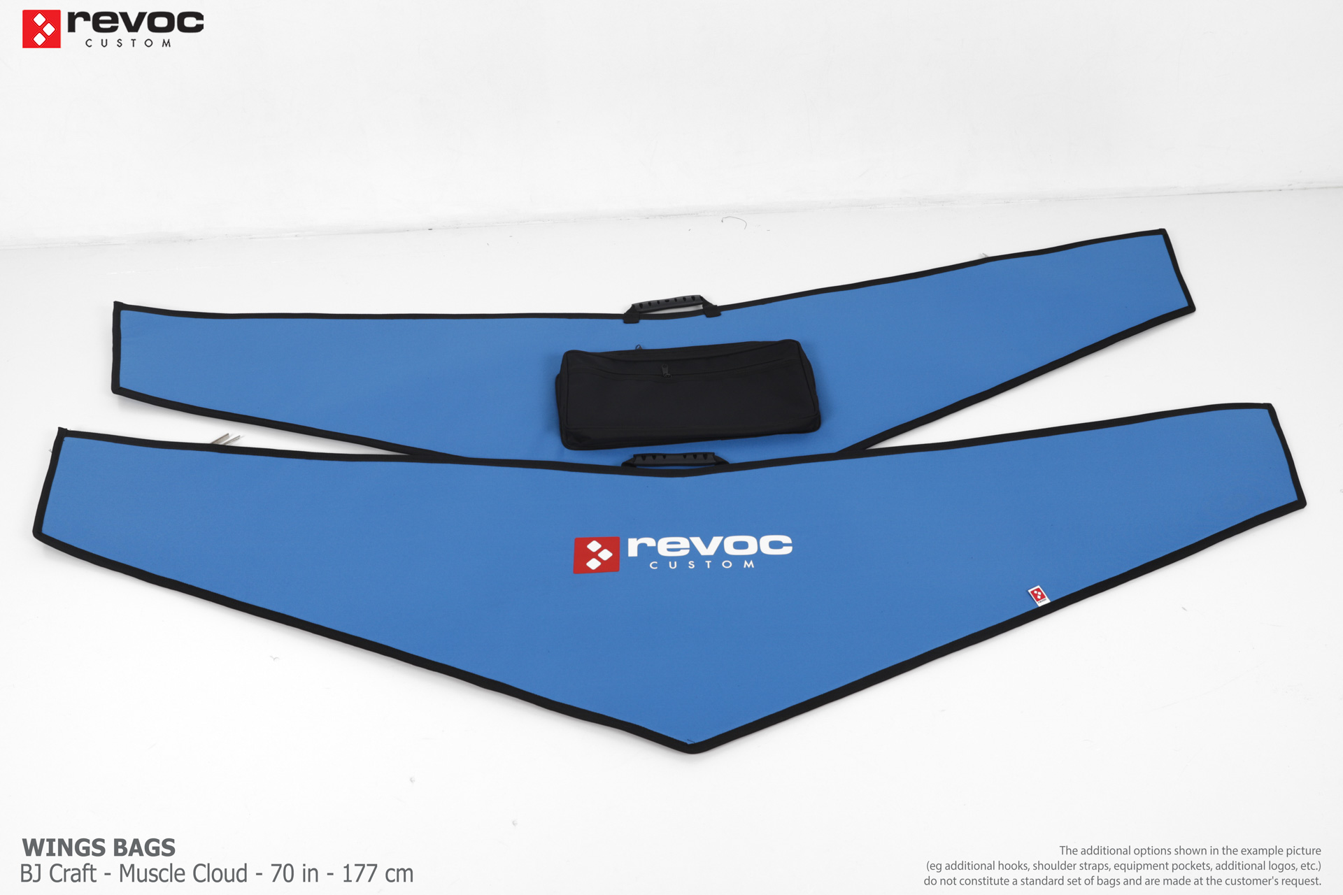 We make bags especially for you on your individual order. You can decide on the colors, choose a logo, put the model name on the cover, additional markings or choose a number of useful additional options. The custom color scheme which is a detailed reproduction of the model's painting can be ordered individually - contact us for the offer: revoc@revoc.eu