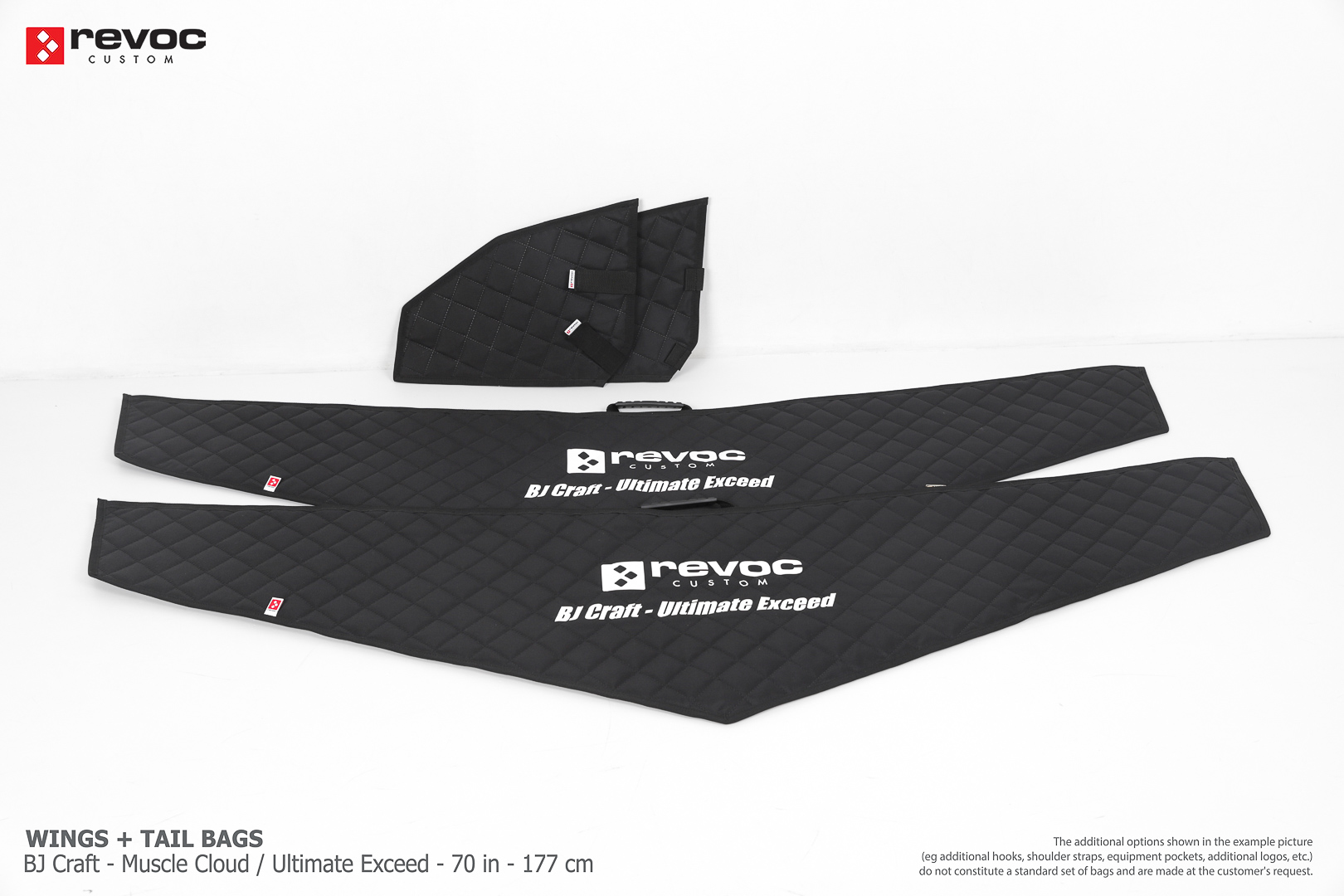 We create custom wing bags especially for you based on your individual order. You can select the colors, add a logo, include the model name on the cover, or choose additional markings and useful options.