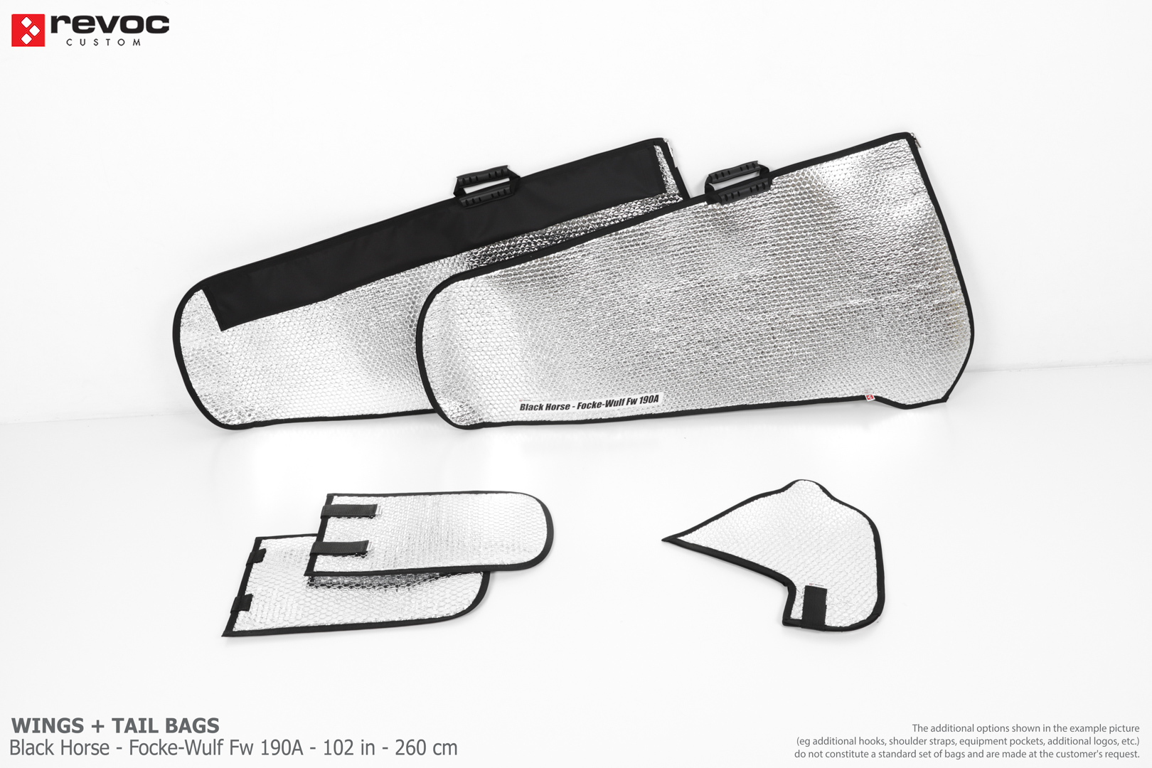 All REVOC bags are made especially for your model. They are completely tailored to the specific structure of your aircraft - regardless of whether it is a JET model, aerobatic model, glider or bi-plane model. Bags are made according to your comments, individual parameters and wishes. Please write your additional comments and wishes in the COMMENT section or send them directly to the e-mail revoc@revoc.eu after placing the order.