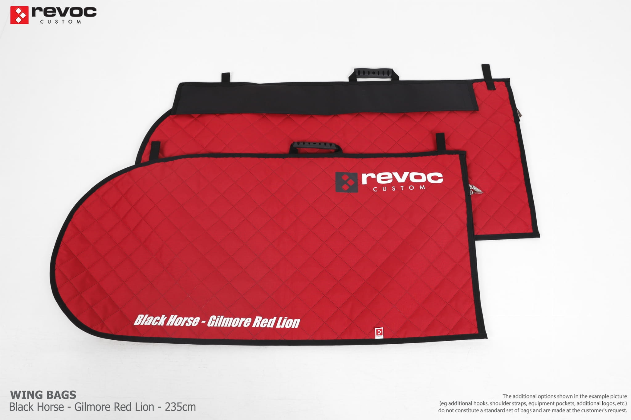 We make bags especially for you on your individual order. You can decide on the colors, choose a logo, put the model name on the cover, additional markings or choose a number of useful additional options. The custom color scheme which is a detailed reproduction of the model's painting can be ordered individually - contact us for the offer: revoc@revoc.eu