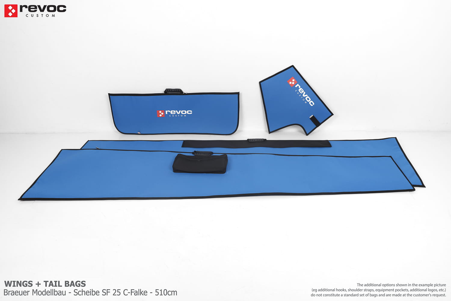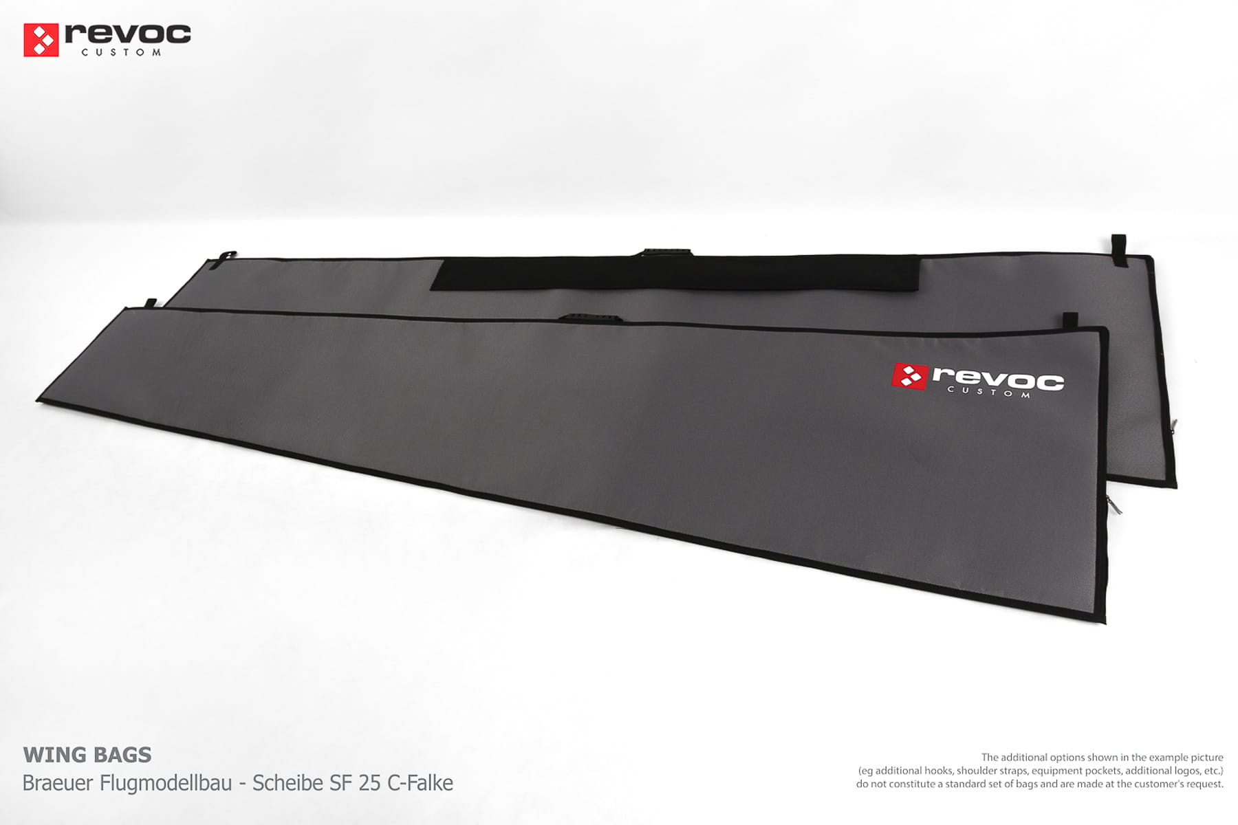 All REVOC bags are made especially for your model. They are completely tailored to the specific structure of your aircraft - regardless of whether it is a JET model, aerobatic model, glider or bi-plane model. Bags are made according to your comments, individual parameters and wishes. Please write your additional comments and wishes in the COMMENT section or send them directly to the e-mail revoc@revoc.eu after placing the order.