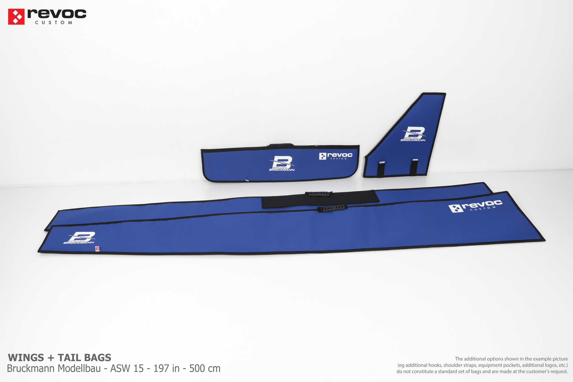 We make bags especially for you on your individual order. You can decide on the colors, choose a logo, put the model name on the cover, additional markings or choose a number of useful additional options. The custom color scheme which is a detailed reproduction of the model's painting can be ordered individually - contact us for the offer: revoc@revoc.eu