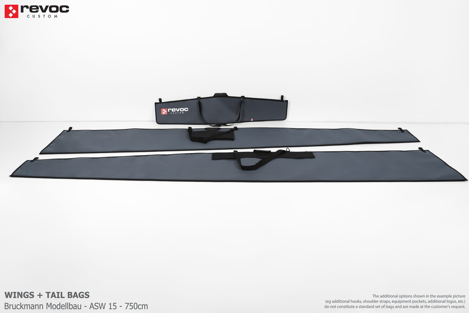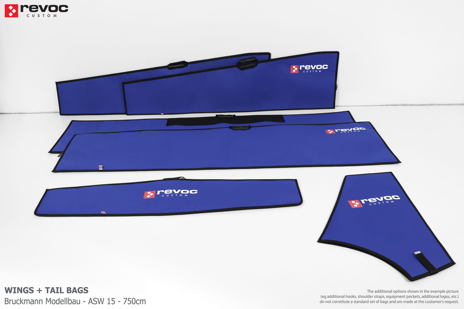 All REVOC bags are made especially for your model. They are completely tailored to the specific structure of your aircraft - regardless of whether it is a JET model, aerobatic model, glider or bi-plane model. Bags are made according to your comments, individual parameters and wishes. Please write your additional comments and wishes in the COMMENT section or send them directly to the e-mail revoc@revoc.eu after placing the order.