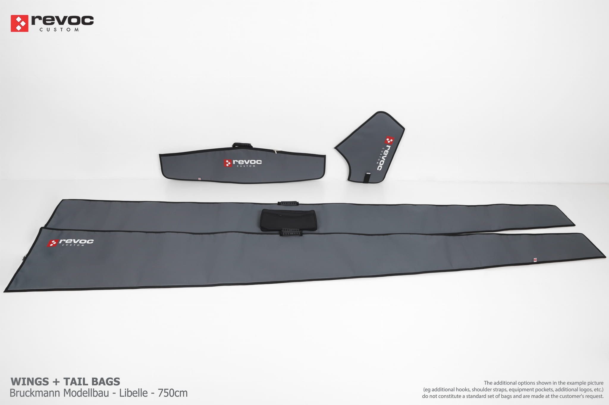 All REVOC bags are made especially for your model. They are completely tailored to the specific structure of your aircraft - regardless of whether it is a JET model, aerobatic model, glider or bi-plane model. Bags are made according to your comments, individual parameters and wishes. Please write your additional comments and wishes in the COMMENT section or send them directly to the e-mail revoc@revoc.eu after placing the order.