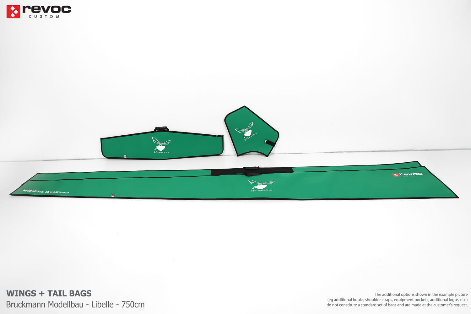 We make bags especially for you on your individual order. You can decide on the colors, choose a logo, put the model name on the cover, additional markings or choose a number of useful additional options. The custom color scheme which is a detailed reproduction of the model's painting can be ordered individually - contact us for the offer: revoc@revoc.eu