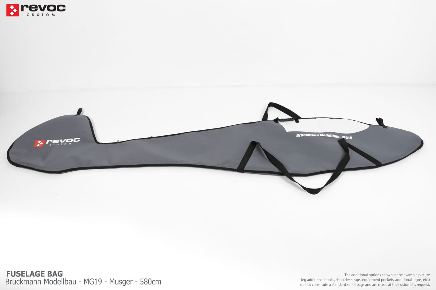 We make bags especially for you on your individual order. You can decide on the colors, choose a logo, put the model name on the cover, additional markings or choose a number of useful additional options. The custom color scheme which is a detailed reproduction of the models painting can be ordered individually - contact us for the offer: revoc@revoc.eu