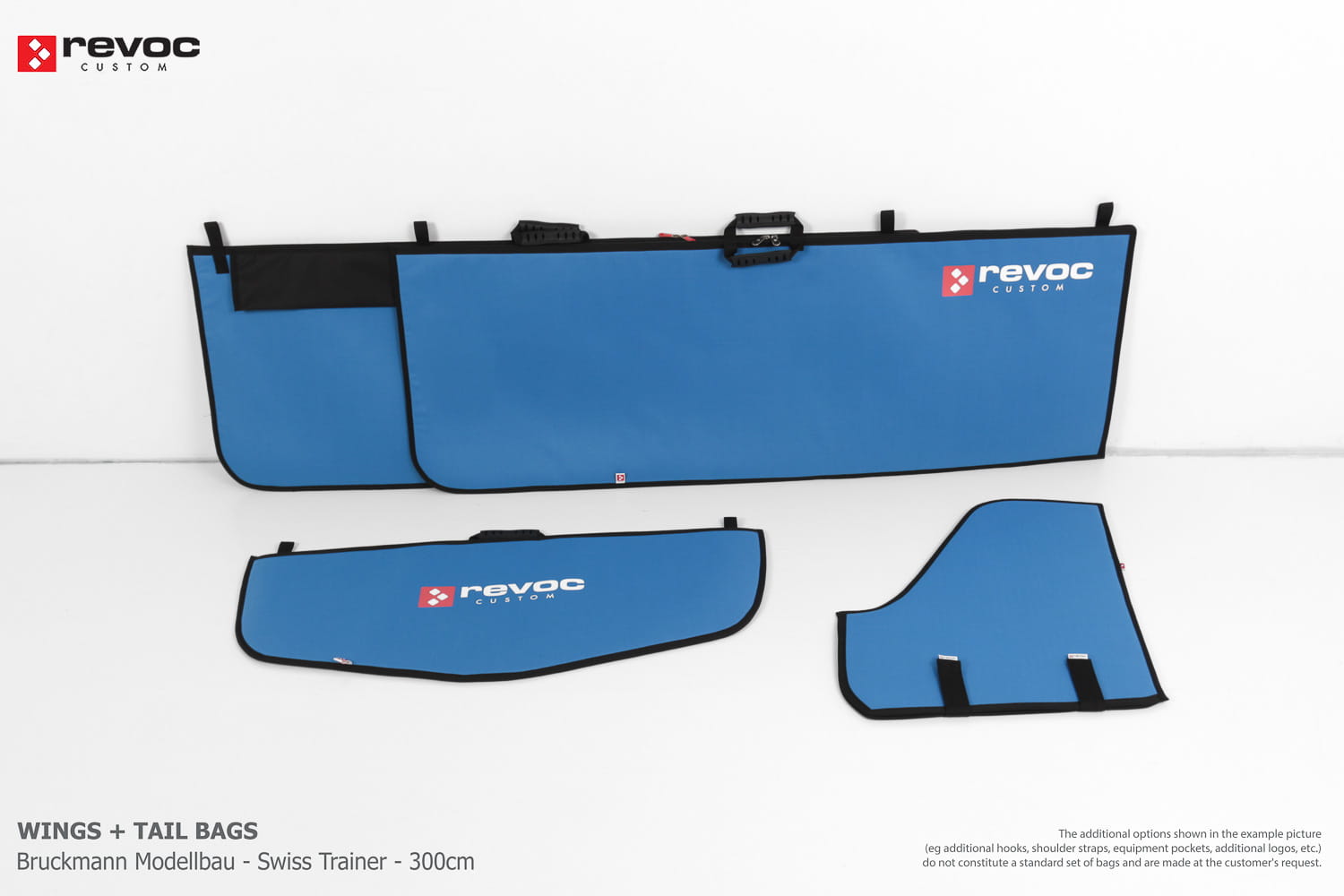 All REVOC RC bags are custom-made specifically for your model. Whether you have a jet, aerobatic aircraft RC, glider, or bi-plane RC model, our wing bags are completely tailored to fit the unique structure of your remote control planes. Each wing bag is crafted according to your individual preferences, parameters, and special requests. Please include any additional comments or wishes in the COMMENT section when placing your order, or email them directly to revoc@revoc.eu for a fully personalized wing bag RC experience.