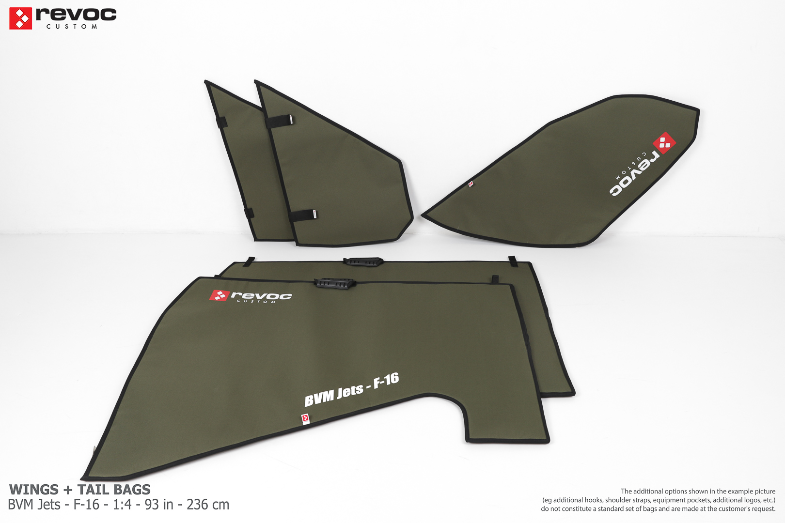 All REVOC bags are made especially for your model. They are completely tailored to the specific structure of your aircraft - regardless of whether it is a JET model, aerobatic model, glider or bi-plane model. Bags are made according to your comments, individual parameters and wishes. Please write your additional comments and wishes in the COMMENT section or send them directly to the e-mail revoc@revoc.eu after placing the order.