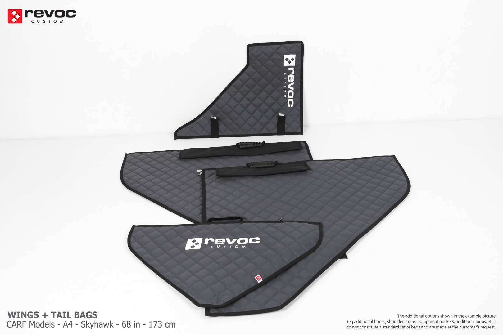 All REVOC RC bags are custom-made specifically for your model. Whether you have a jet, aerobatic aircraft RC, glider, or bi-plane RC model, our wing bags are completely tailored to fit the unique structure of your remote control planes. Each wing bag is crafted according to your individual preferences, parameters, and special requests. Please include any additional comments or wishes in the COMMENT section when placing your order, or email them directly to revoc@revoc.eu for a fully personalized wing bag RC experience.