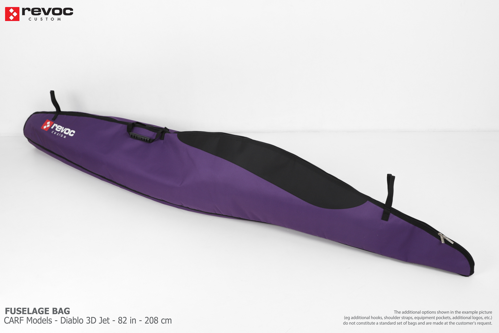 We make bags especially for you on your individual order. You can decide on the colors, choose a logo, put the model name on the cover, additional markings or choose a number of useful additional options. The custom color scheme which is a detailed reproduction of the models painting can be ordered individually - contact us for the offer: revoc@revoc.eu
