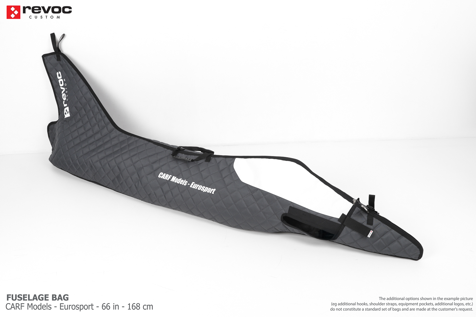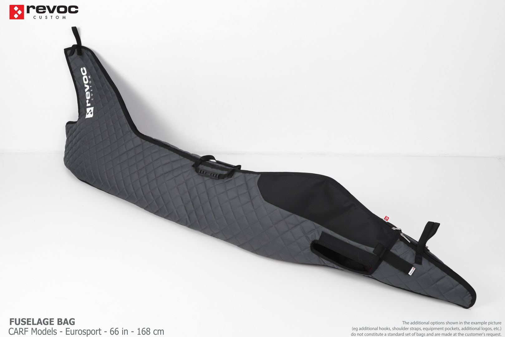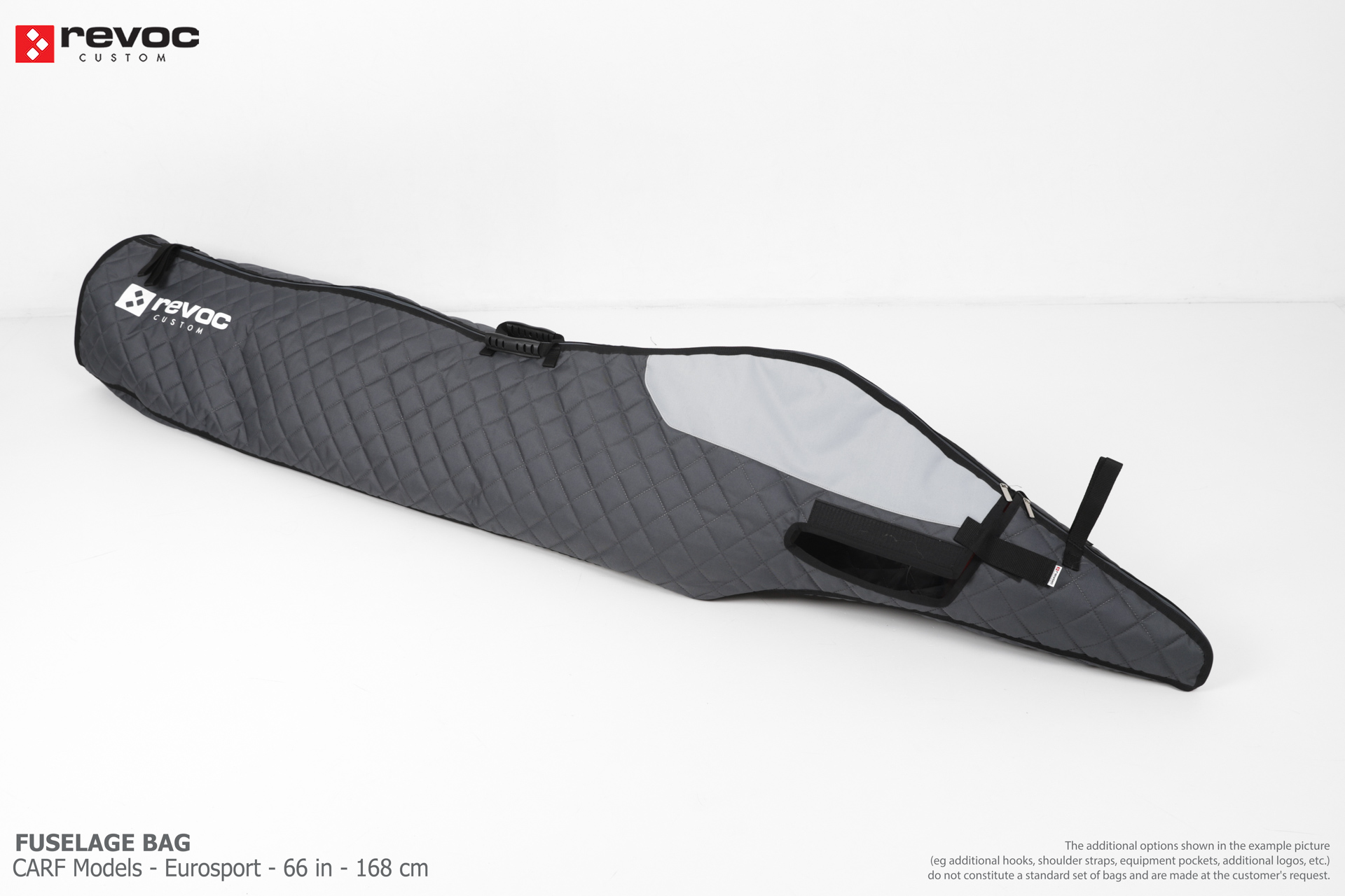 All REVOC RC bags are custom-made specifically for your model. Whether you have a jet, aerobatic aircraft RC, glider, or bi-plane RC model, our wing bags are completely tailored to fit the unique structure of your remote control planes. Each wing bag is crafted according to your individual preferences, parameters, and special requests. Please include any additional comments or wishes in the COMMENT section when placing your order, or email them directly to revoc@revoc.eu for a fully personalized wing bag RC experience.