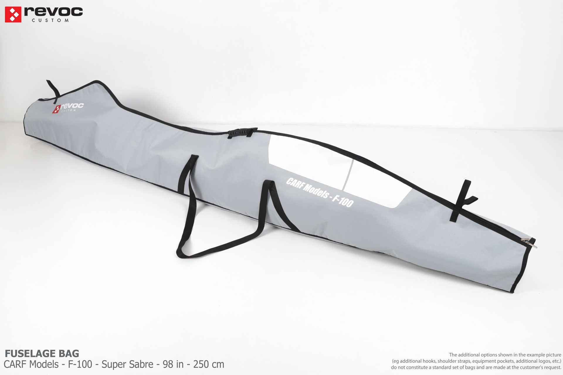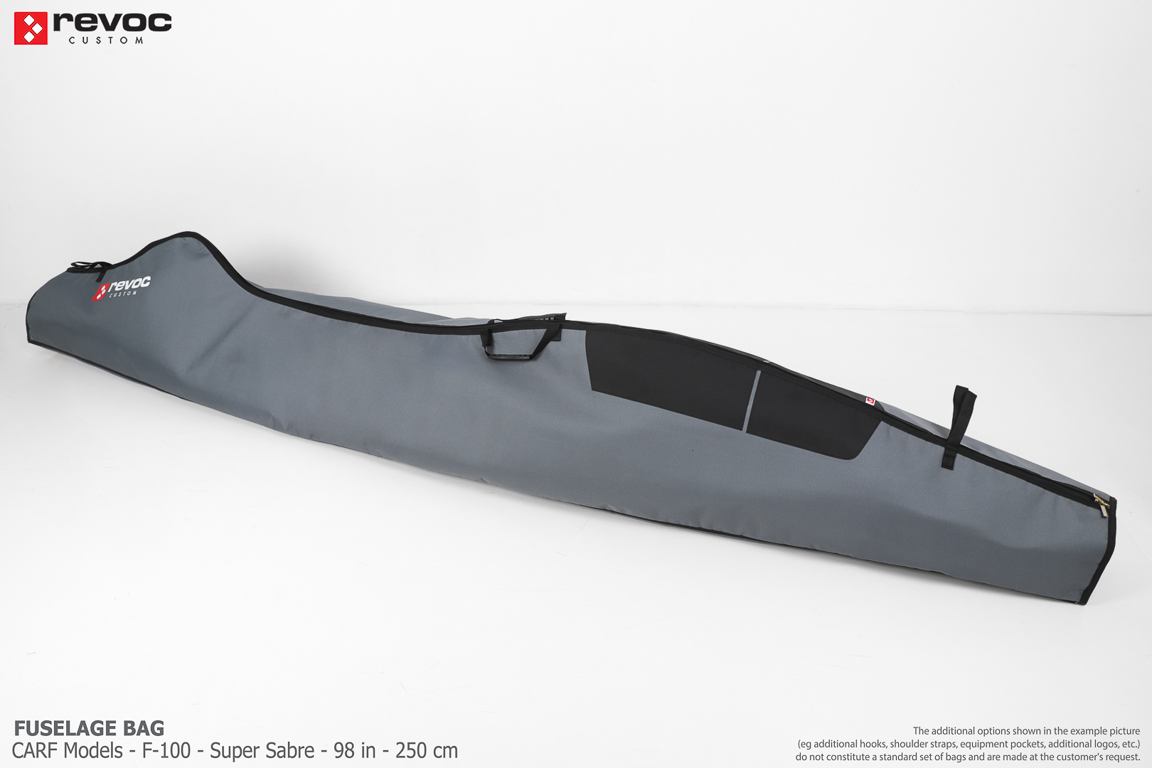 We make bags especially for you on your individual order. You can decide on the colors, choose a logo, put the model name on the cover, additional markings or choose a number of useful additional options. The custom color scheme which is a detailed reproduction of the models painting can be ordered individually - contact us for the offer: revoc@revoc.eu
