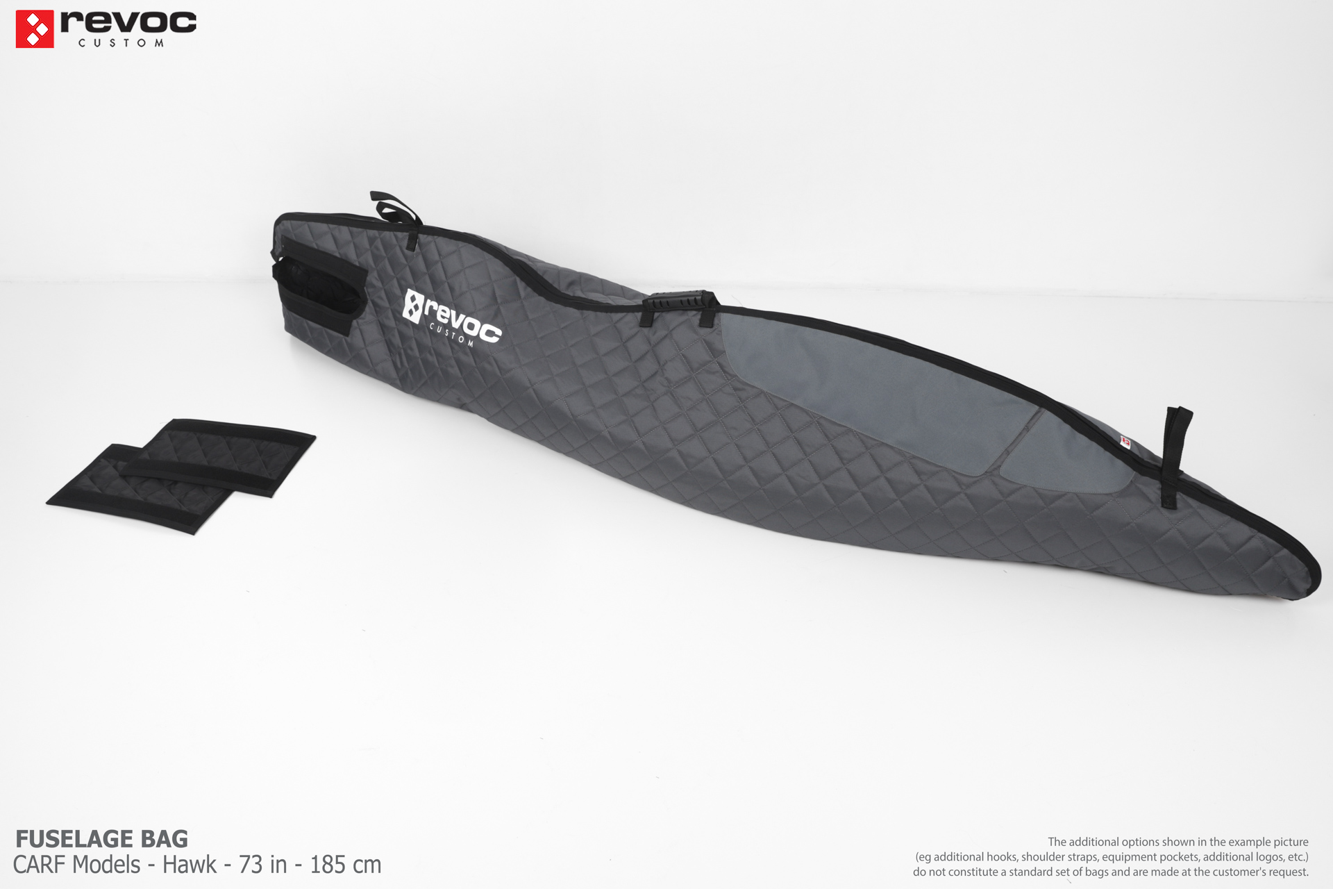 All REVOC RC bags are custom-made specifically for your model. Whether you have a jet, aerobatic aircraft RC, glider, or bi-plane RC model, our wing bags are completely tailored to fit the unique structure of your remote control planes. Each wing bag is crafted according to your individual preferences, parameters, and special requests. Please include any additional comments or wishes in the COMMENT section when placing your order, or email them directly to revoc@revoc.eu for a fully personalized wing bag RC experience.