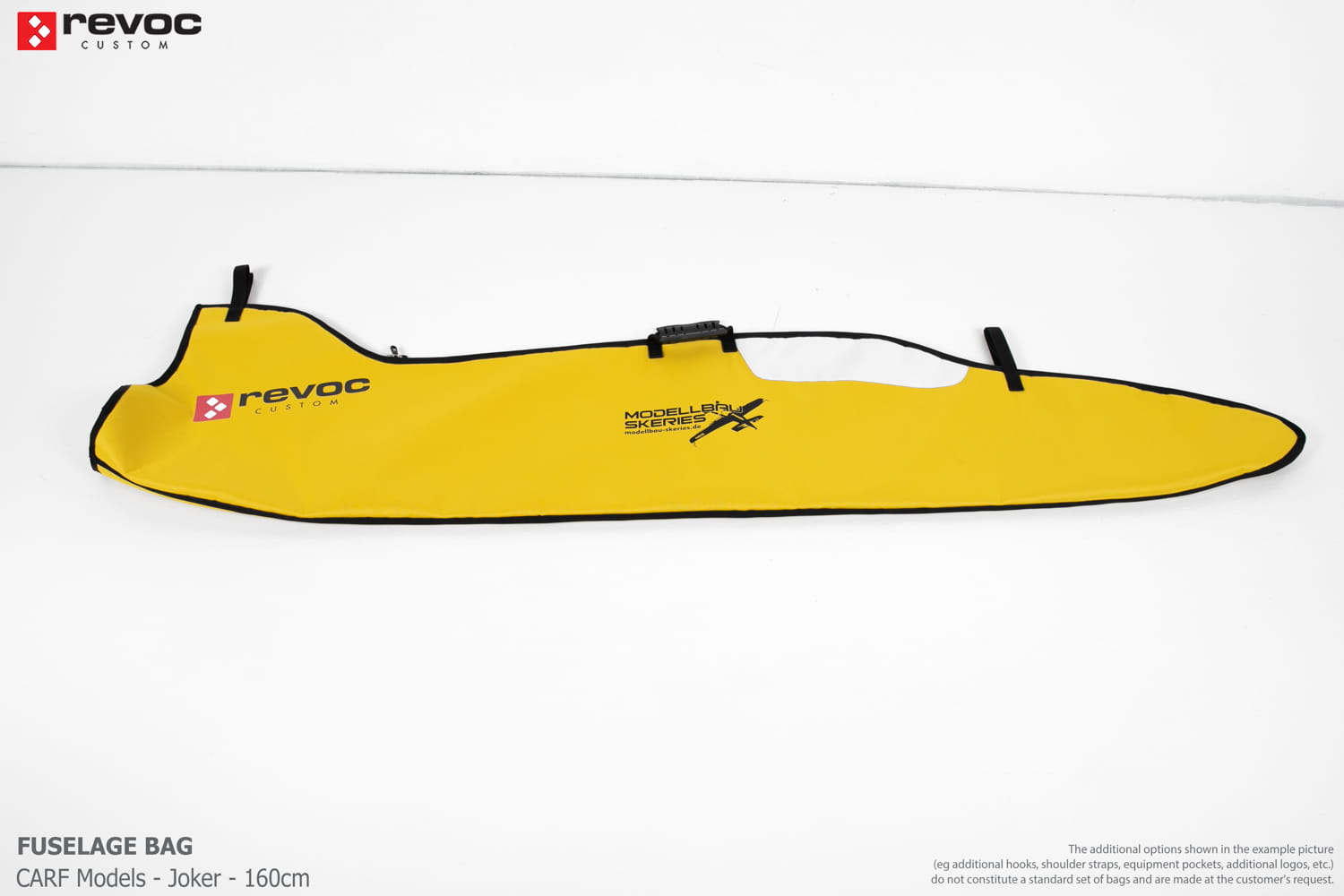 All REVOC bags are made especially for your model. They are completely tailored to the specific structure of your aircraft - regardless of whether it is a JET model, aerobatic model, glider or bi-plane model. Bags are made according to your comments, individual parameters and wishes. Please write your additional comments and wishes in the COMMENT section or send them directly to the e-mail revoc@revoc.eu after placing the order.