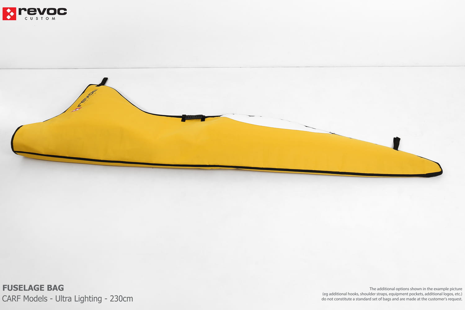 We make bags especially for you on your individual order. You can decide on the colors, choose a logo, put the model name on the cover, additional markings or choose a number of useful additional options. The custom color scheme which is a detailed reproduction of the models painting can be ordered individually - contact us for the offer: revoc@revoc.eu