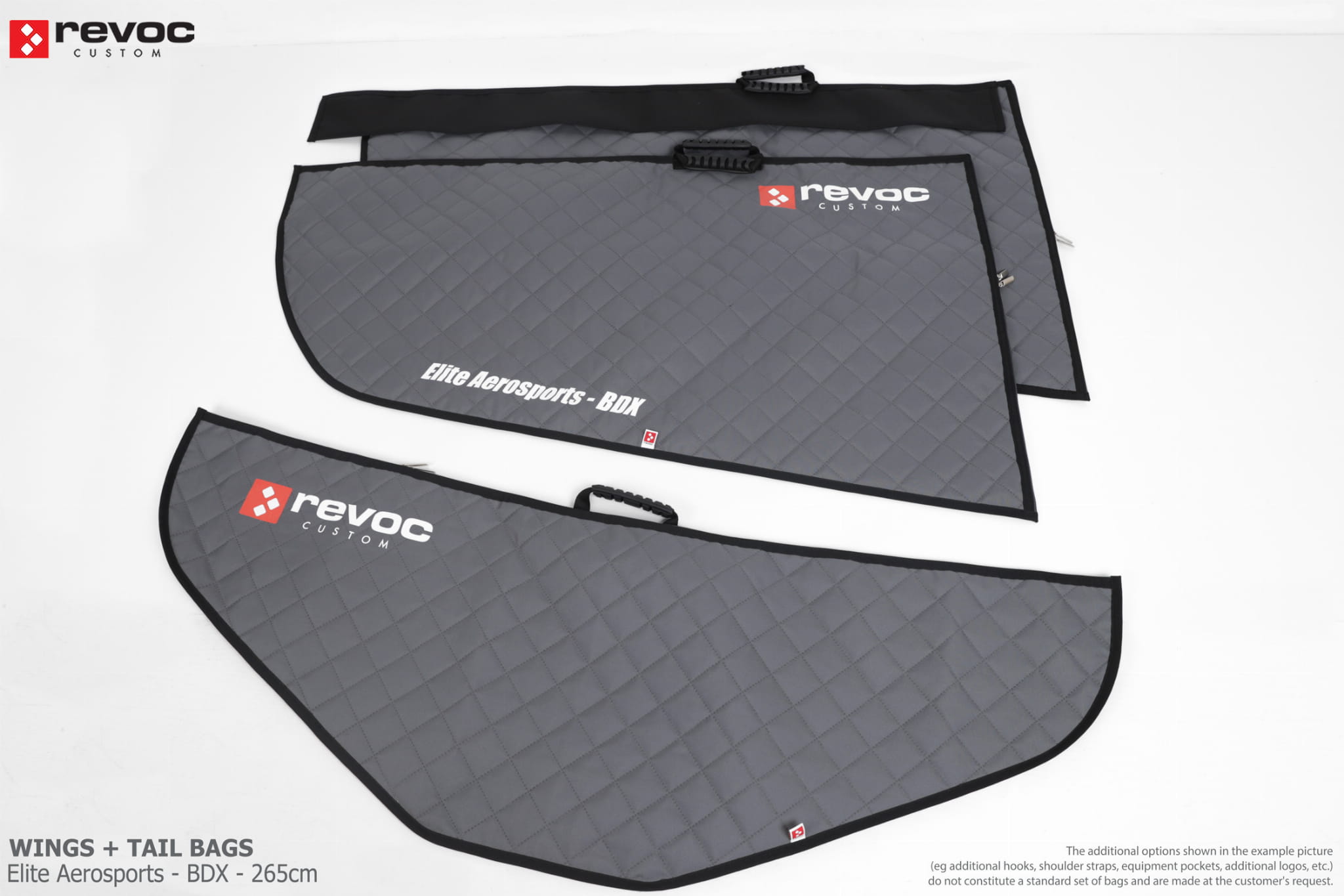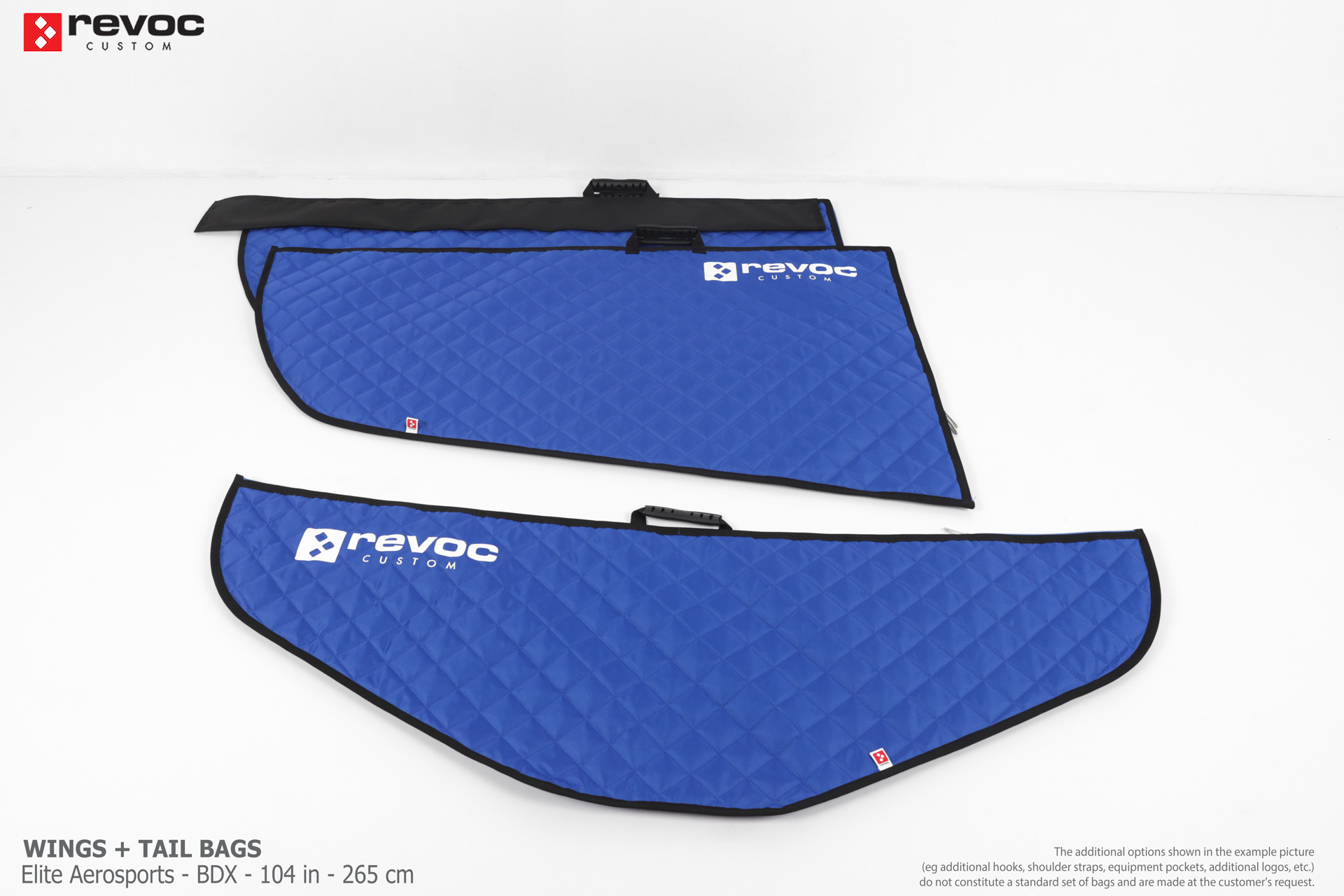 We create custom wing bags especially for you based on your individual order. You can select the colors, add a logo, include the model name on the cover, or choose additional markings and useful options.