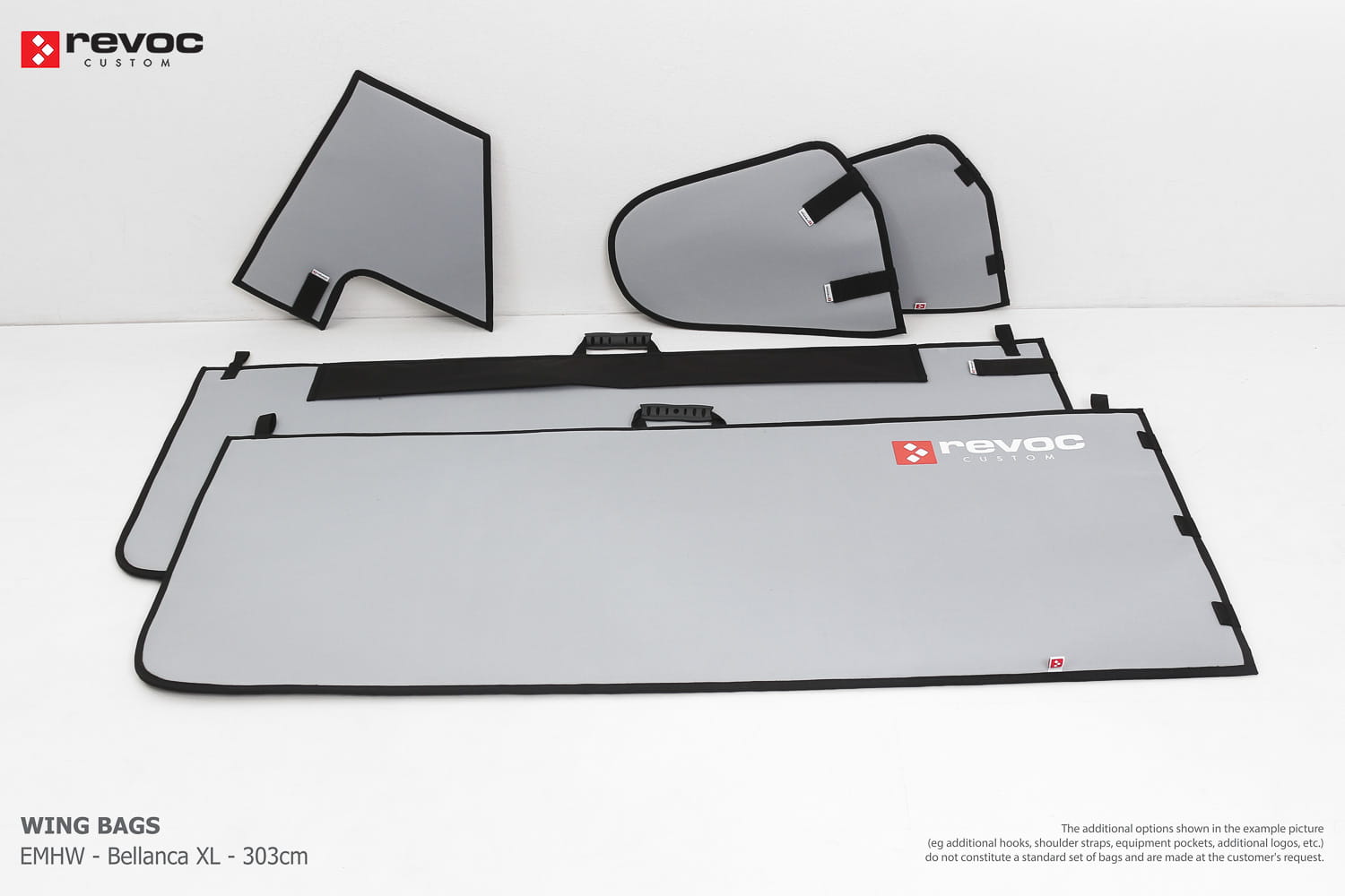 We create custom wing bags especially for you based on your individual order. You can select the colors, add a logo, include the model name on the cover, or choose additional markings and useful options.
