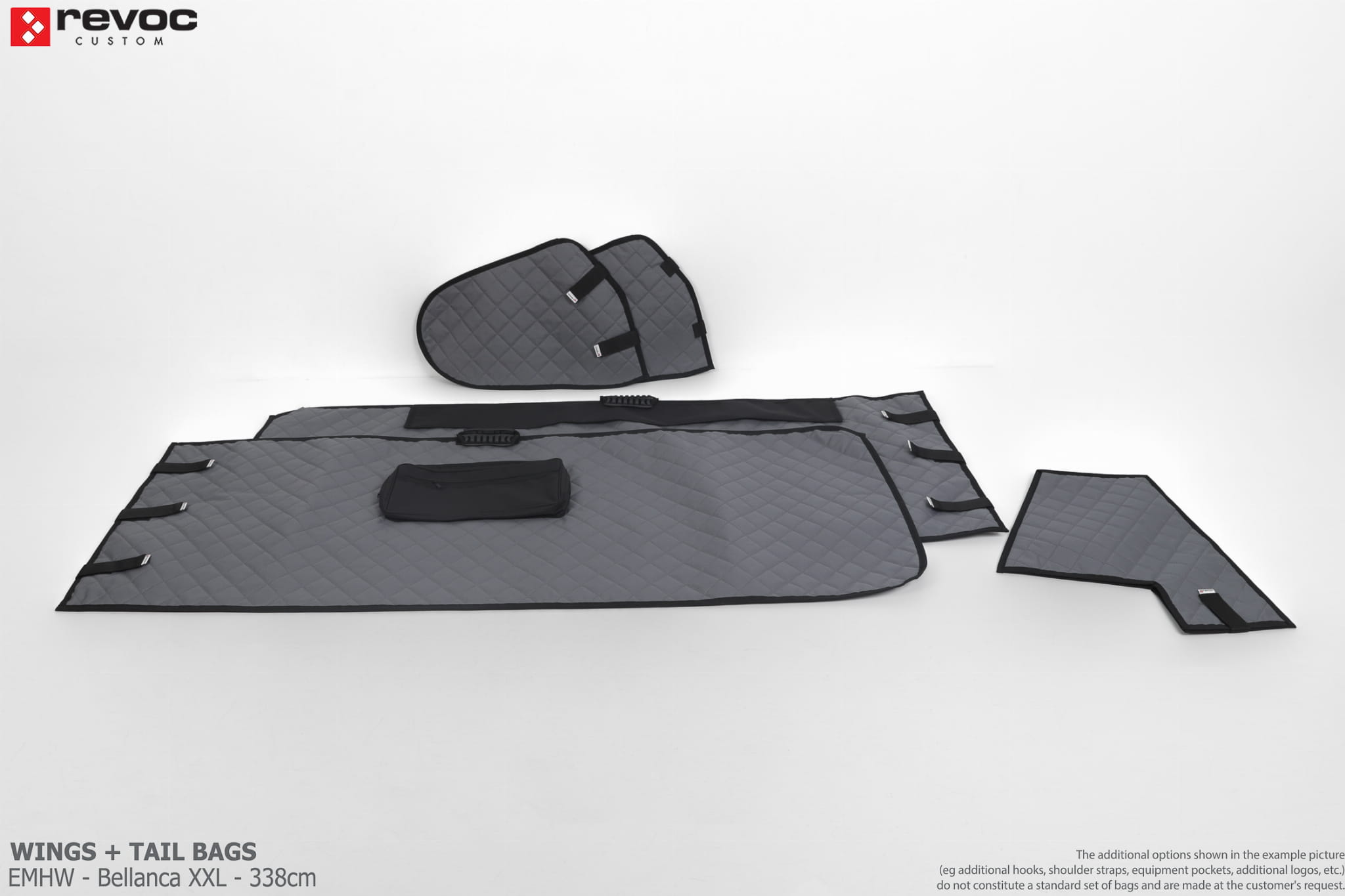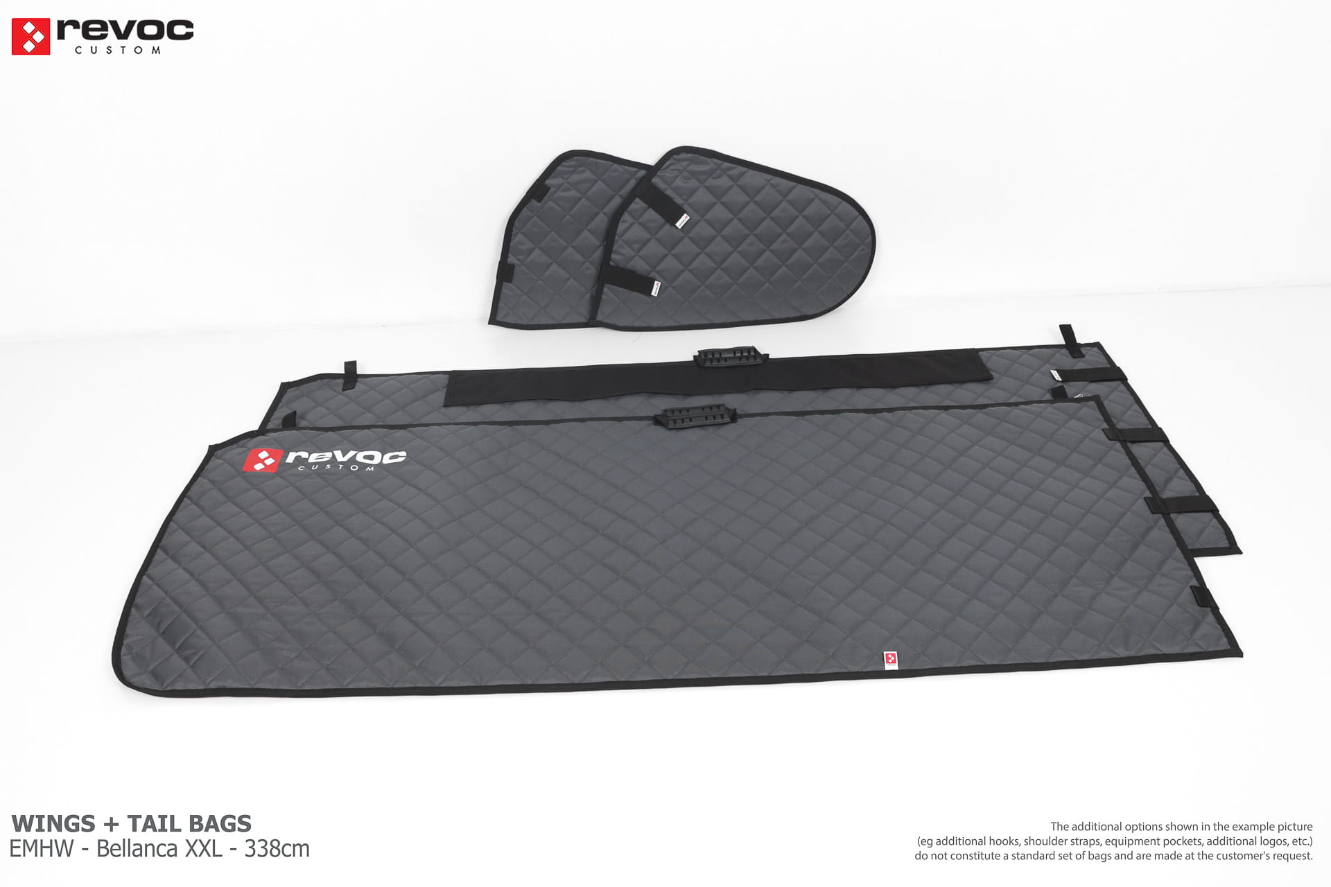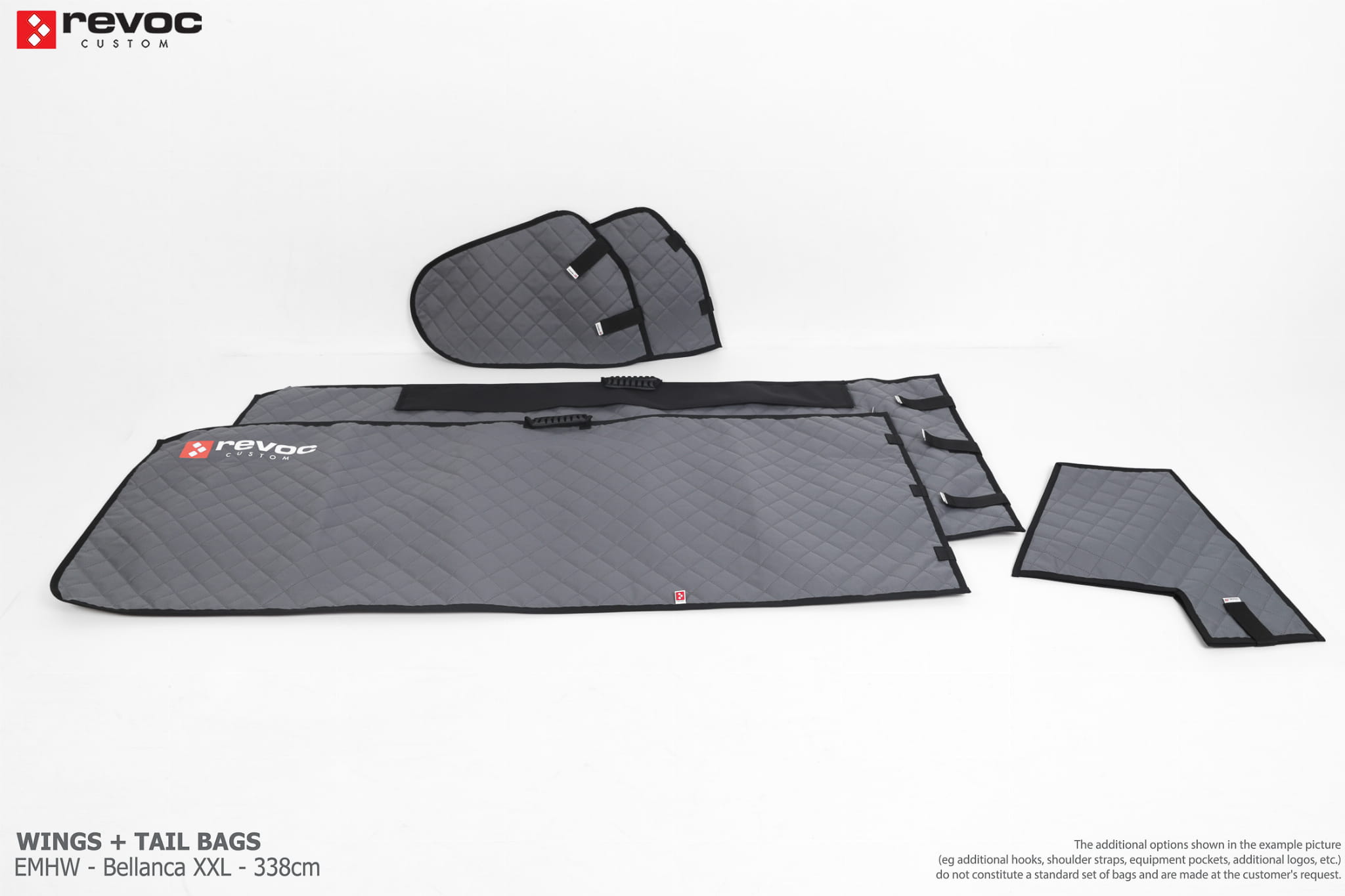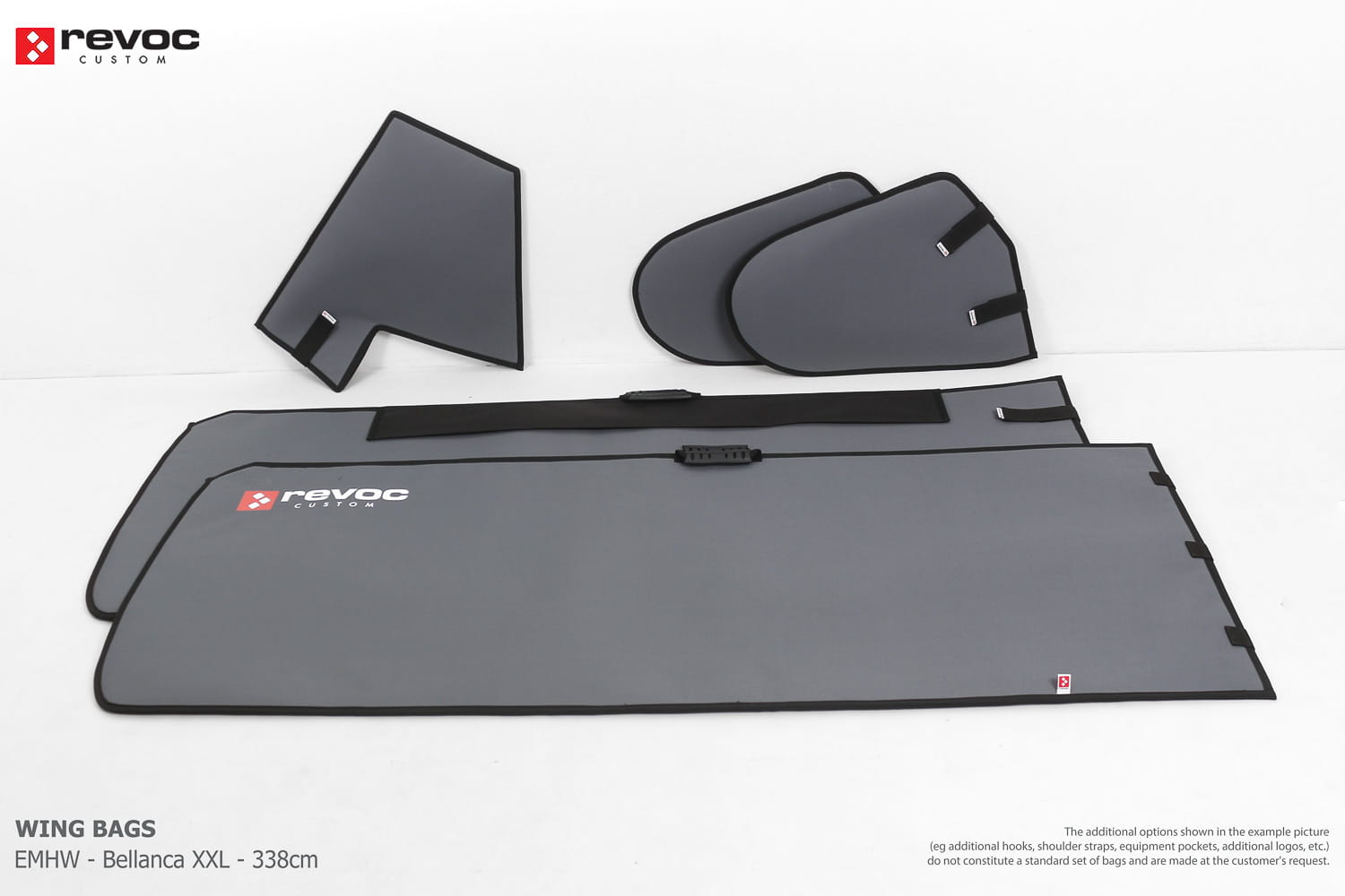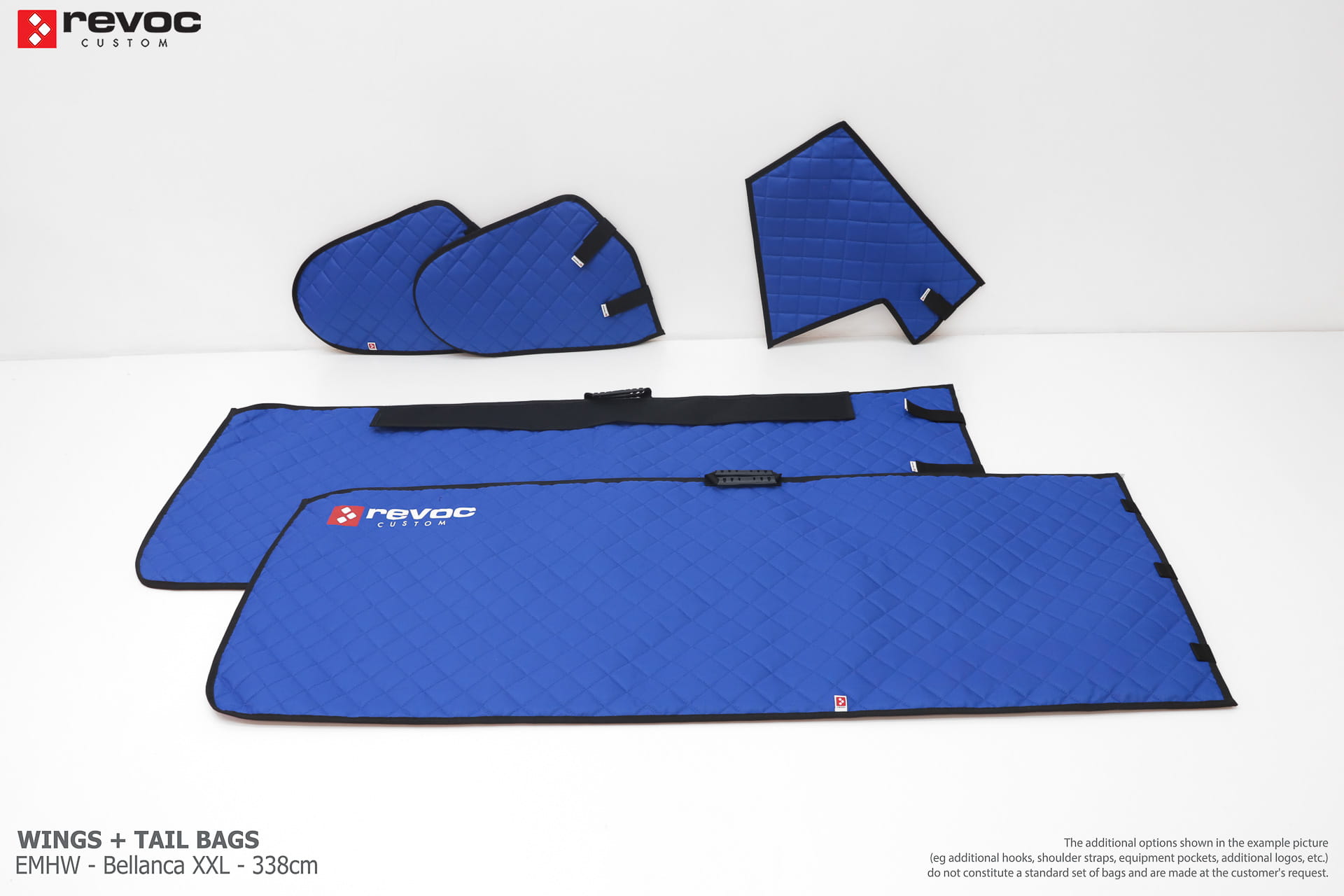 We create custom wing bags especially for you based on your individual order. You can select the colors, add a logo, include the model name on the cover, or choose additional markings and useful options.