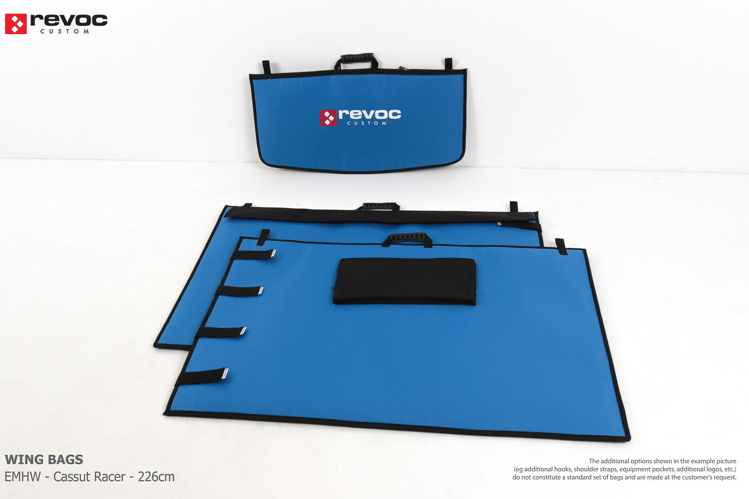 We make bags especially for you on your individual order. You can decide on the colors, choose a logo, put the model name on the cover, additional markings or choose a number of useful additional options. The custom color scheme which is a detailed reproduction of the model's painting can be ordered individually - contact us for the offer: revoc@revoc.eu