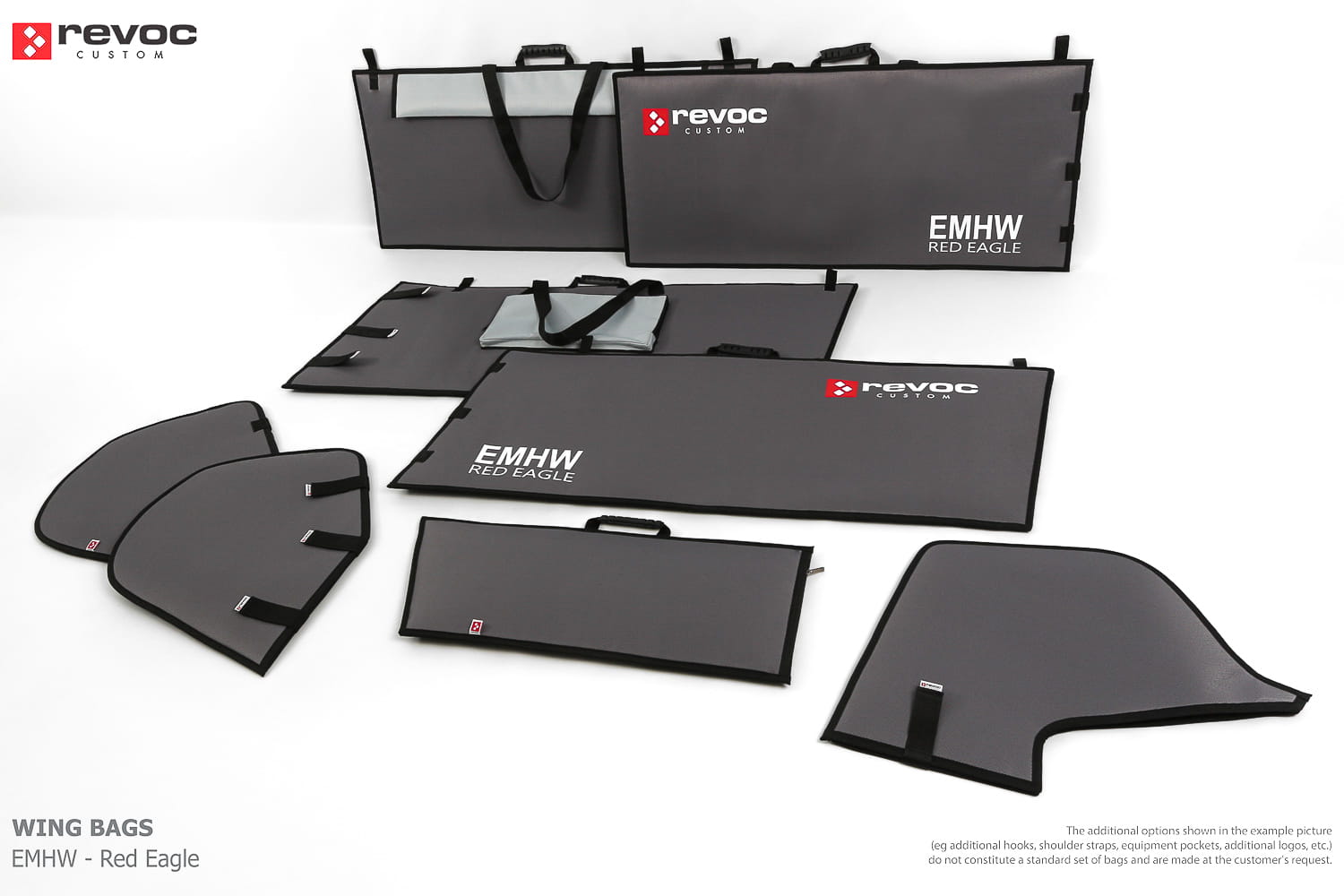 We create custom wing bags especially for you based on your individual order. You can select the colors, add a logo, include the model name on the cover, or choose additional markings and useful options.
