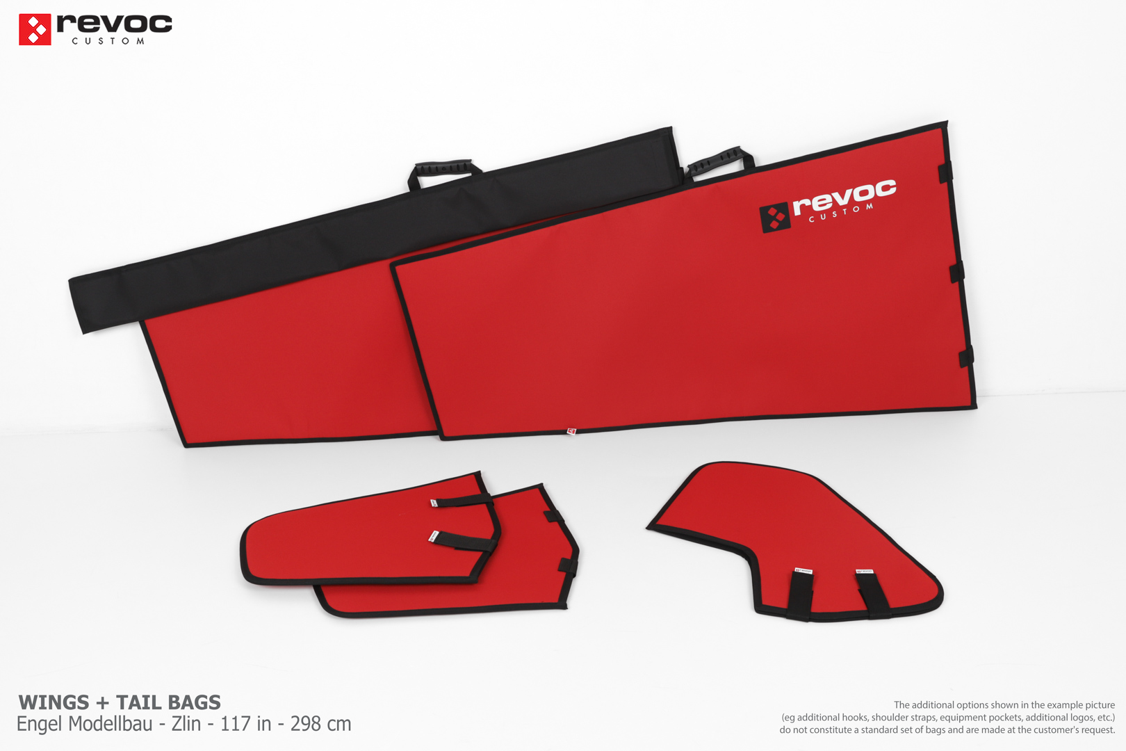 All REVOC bags are made especially for your model. They are completely tailored to the specific structure of your aircraft - regardless of whether it is a JET model, aerobatic model, glider or bi-plane model. Bags are made according to your comments, individual parameters and wishes. Please write your additional comments and wishes in the COMMENT section or send them directly to the e-mail revoc@revoc.eu after placing the order.