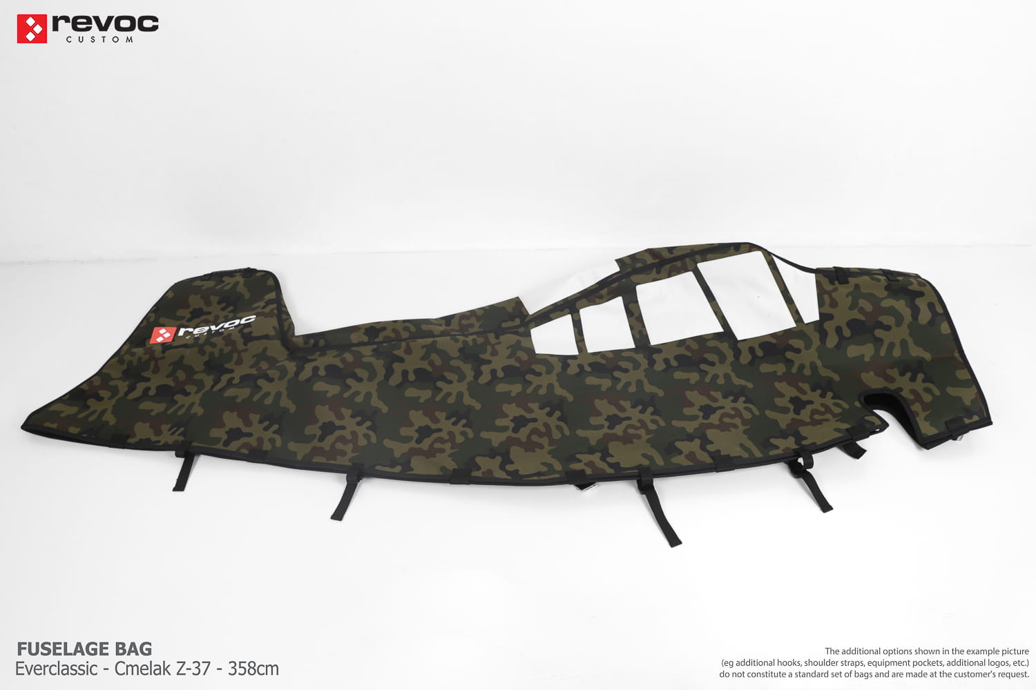 REVOC RC fuselage covers are designed to ensure safe and comfortable transport of your RC airplane in the best style. These custom fuselage covers feature expressive patterns with extensive personalization options, allowing you to stand out among fellow modelers. We craft RC bags specifically for you, tailored to your individual order. You can choose colors, add a logo, include the model name on the cover, and select additional markings or other useful options.