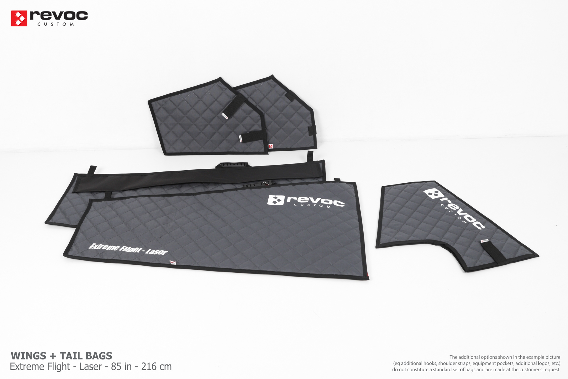 We make bags especially for you on your individual order. You can decide on the colors, choose a logo, put the model name on the cover, additional markings or choose a number of useful additional options. The custom color scheme which is a detailed reproduction of the model's painting can be ordered individually - contact us for the offer: revoc@revoc.eu