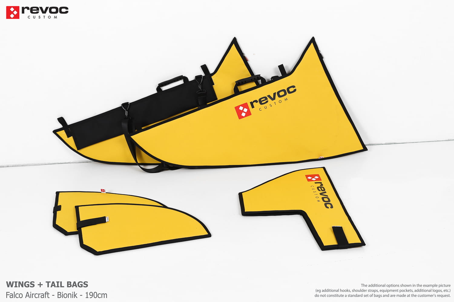 All REVOC RC bags are custom-made specifically for your model. Whether you have a jet, aerobatic aircraft RC, glider, or bi-plane RC model, our wing bags are completely tailored to fit the unique structure of your remote control planes. Each wing bag is crafted according to your individual preferences, parameters, and special requests. Please include any additional comments or wishes in the COMMENT section when placing your order, or email them directly to revoc@revoc.eu for a fully personalized wing bag RC experience.