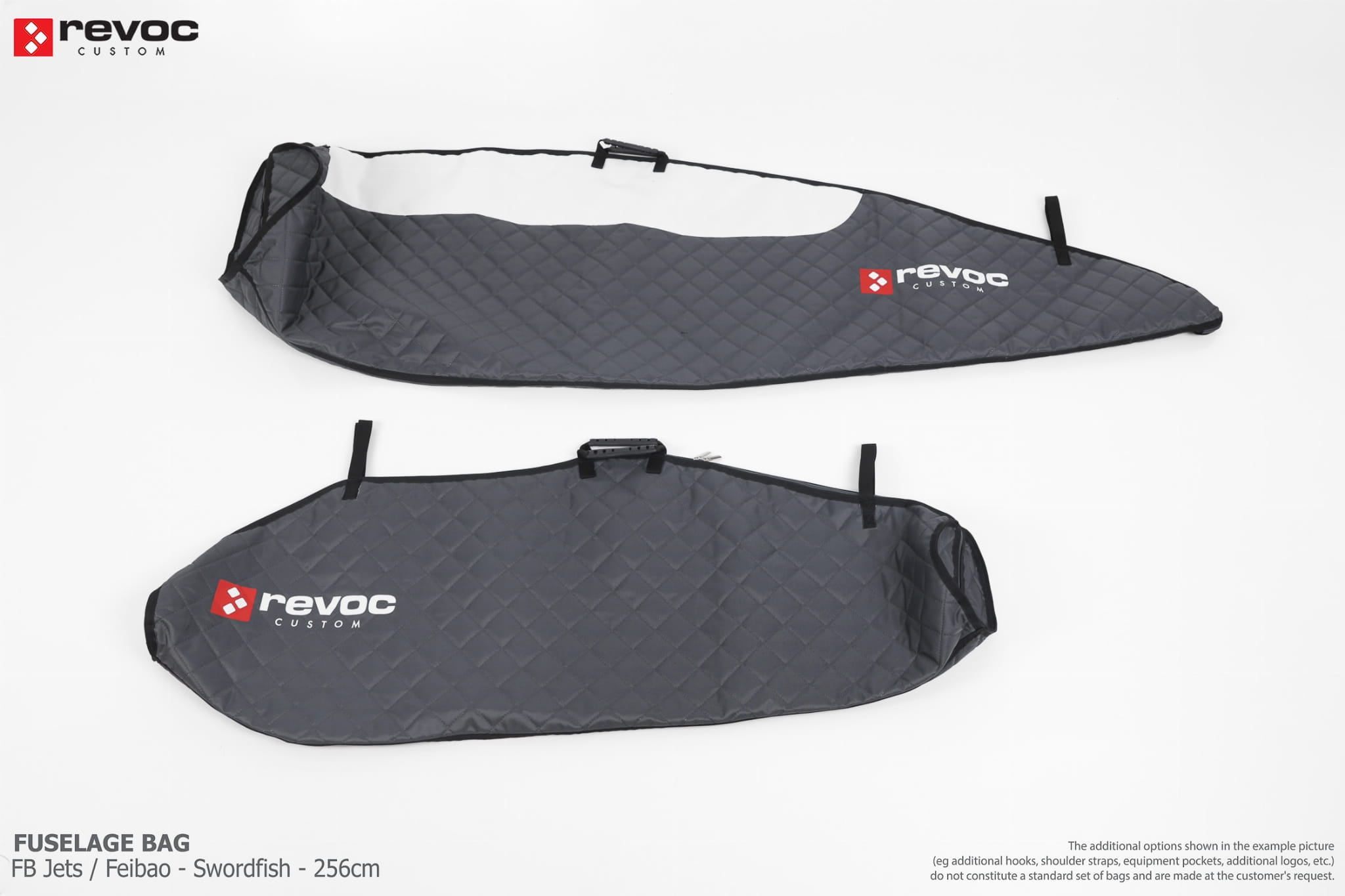 We make bags especially for you on your individual order. You can decide on the colors, choose a logo, put the model name on the cover, additional markings or choose a number of useful additional options. The custom color scheme which is a detailed reproduction of the models painting can be ordered individually - contact us for the offer: revoc@revoc.eu
