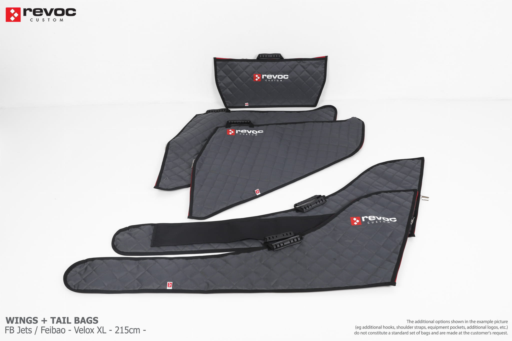 We create custom wing bags especially for you based on your individual order. You can select the colors, add a logo, include the model name on the cover, or choose additional markings and useful options.