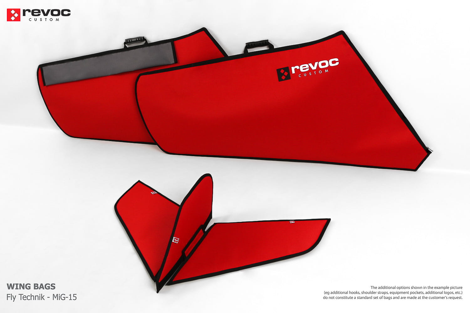We make bags especially for you on your individual order. You can decide on the colors, choose a logo, put the model name on the cover, additional markings or choose a number of useful additional options. The custom color scheme which is a detailed reproduction of the model's painting can be ordered individually - contact us for the offer: revoc@revoc.eu