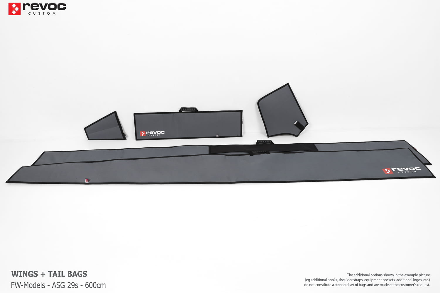 We create custom wing bags especially for you based on your individual order. You can select the colors, add a logo, include the model name on the cover, or choose additional markings and useful options.