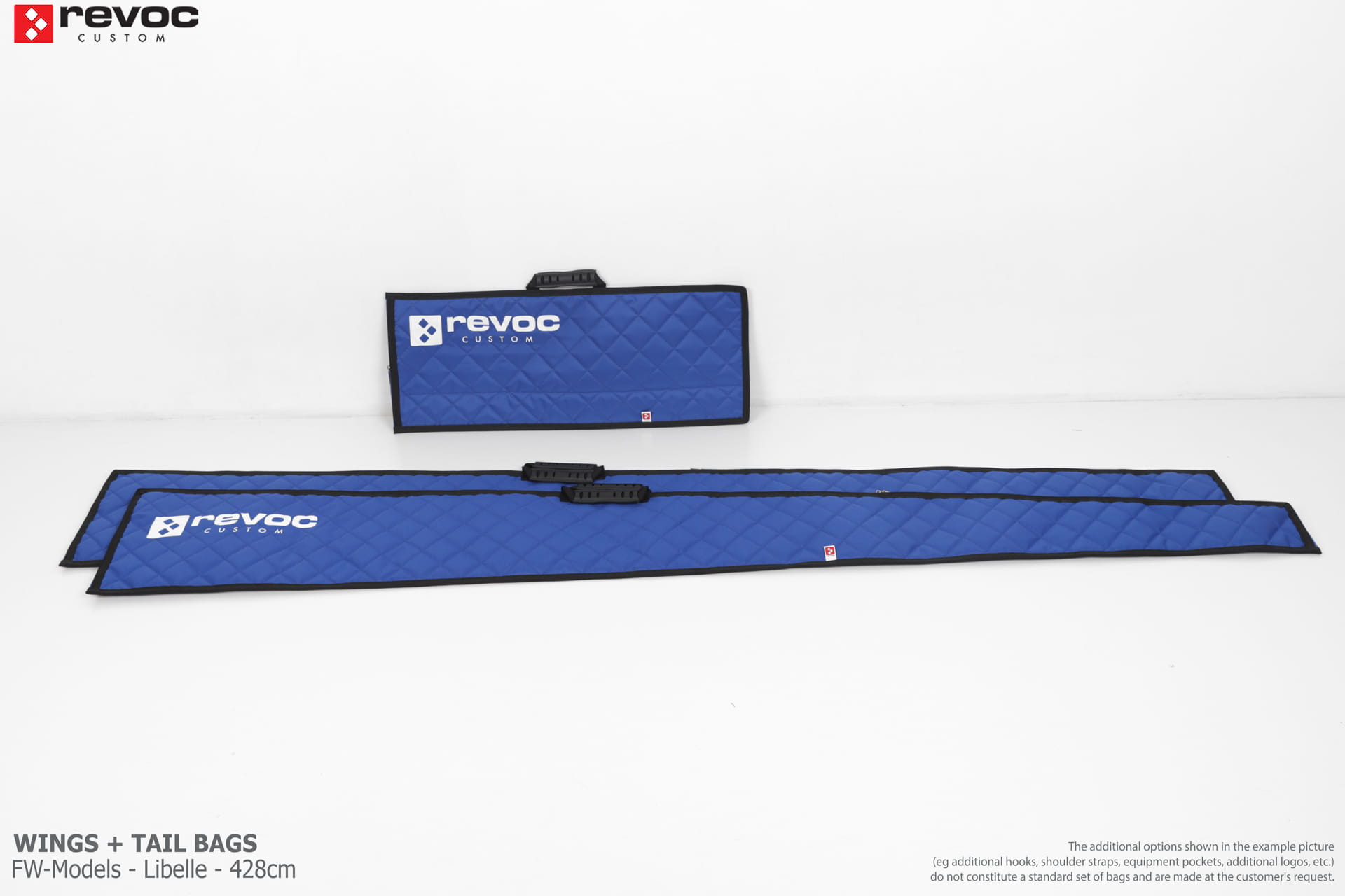 We create custom wing bags especially for you based on your individual order. You can select the colors, add a logo, include the model name on the cover, or choose additional markings and useful options.