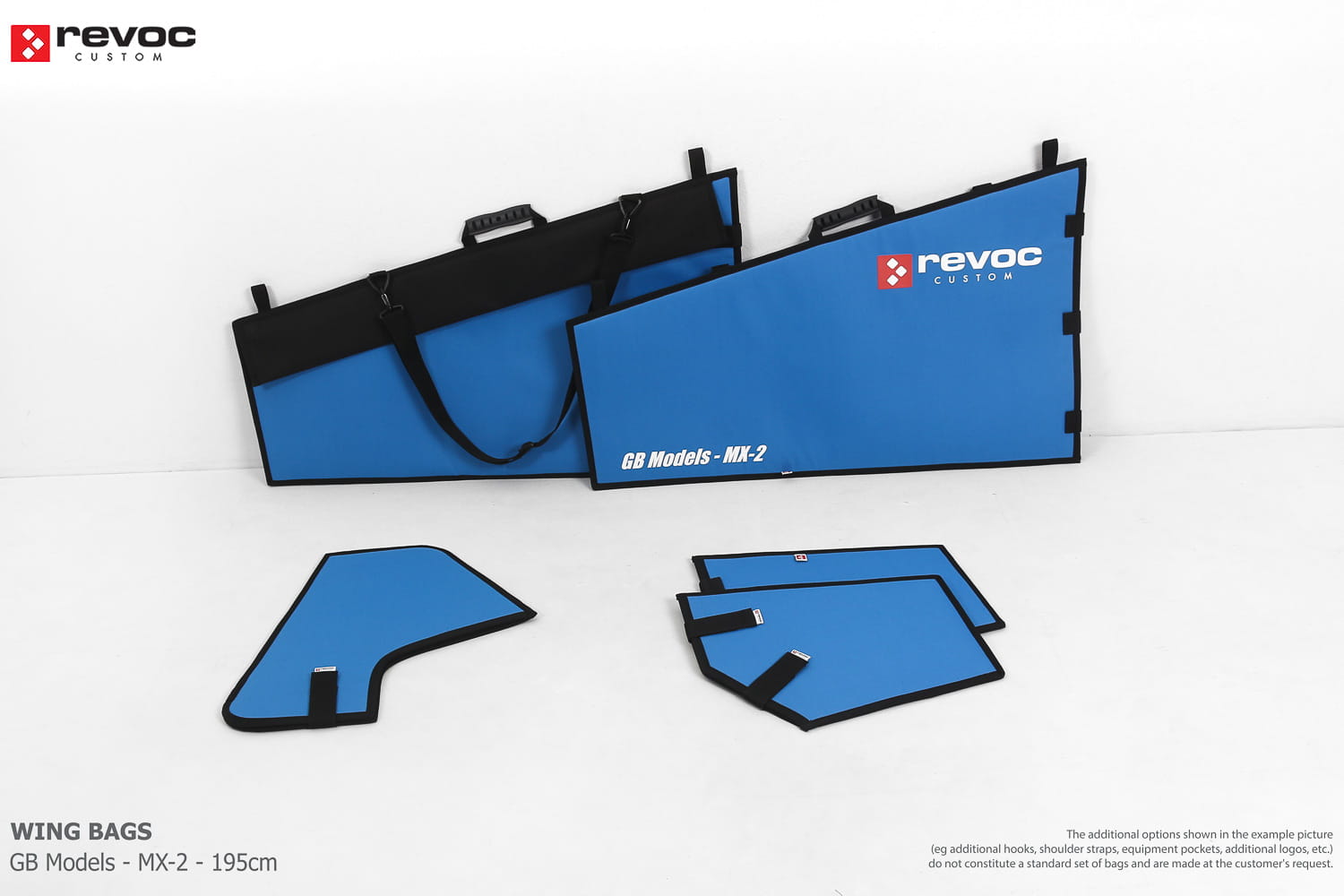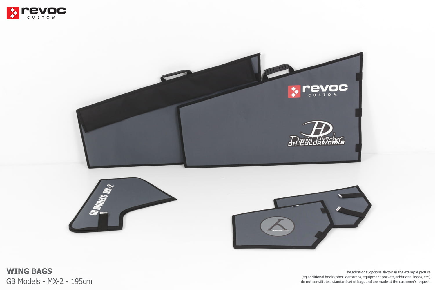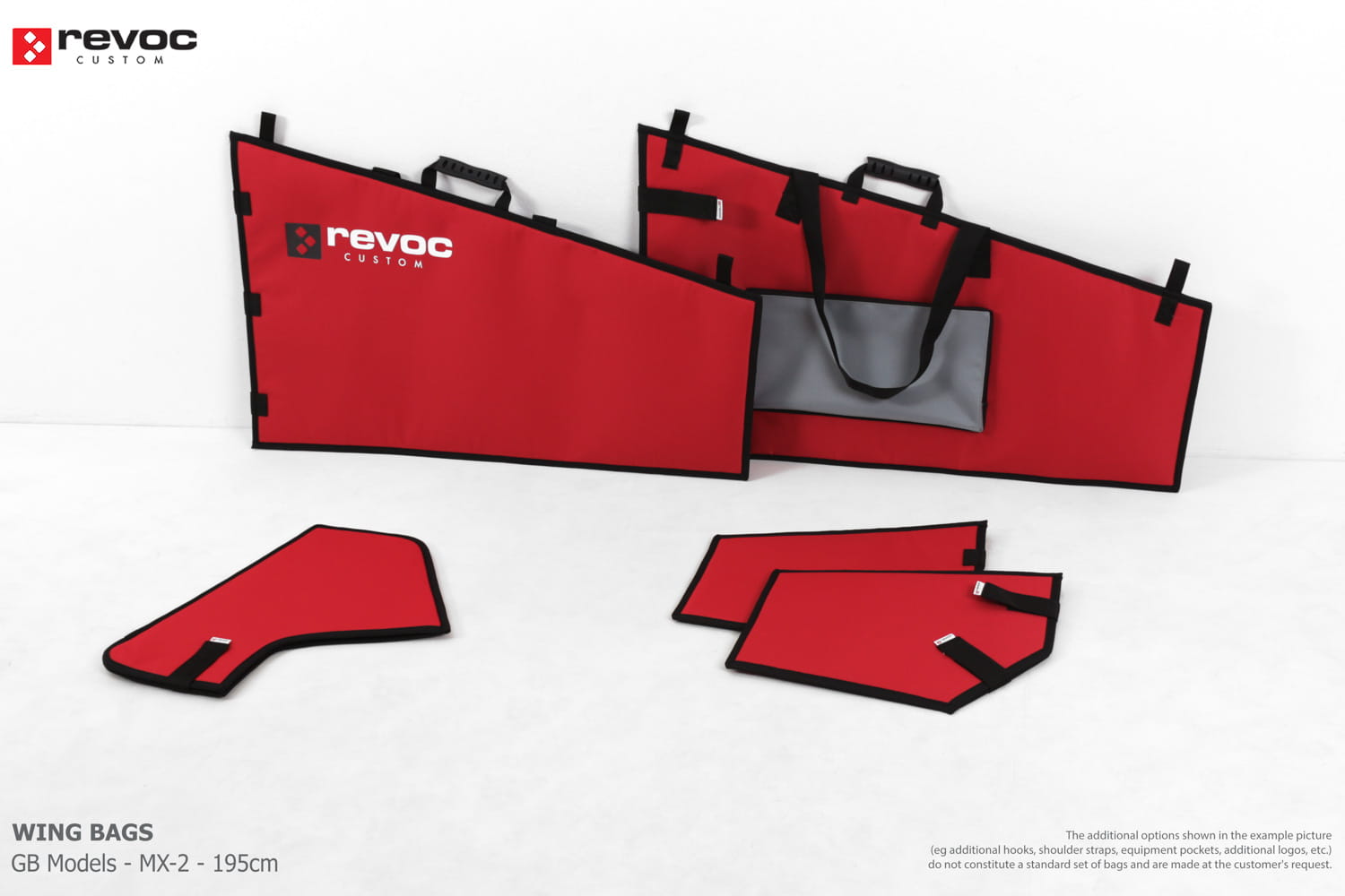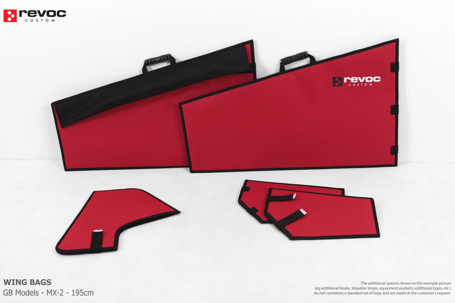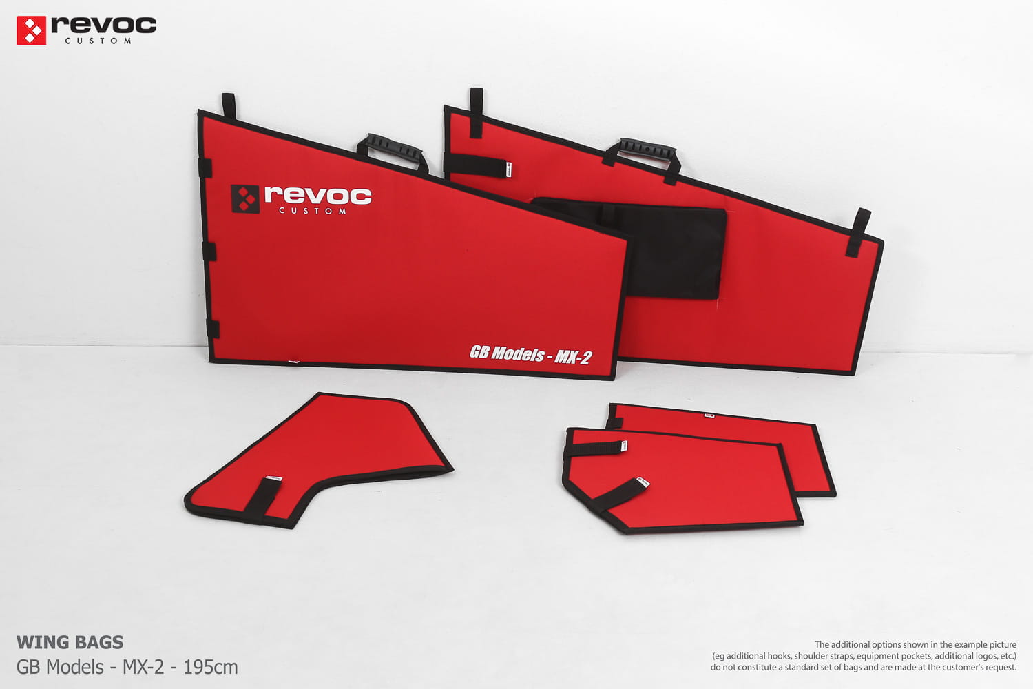 We make bags especially for you on your individual order. You can decide on the colors, choose a logo, put the model name on the cover, additional markings or choose a number of useful additional options. The custom color scheme which is a detailed reproduction of the model's painting can be ordered individually - contact us for the offer: revoc@revoc.eu