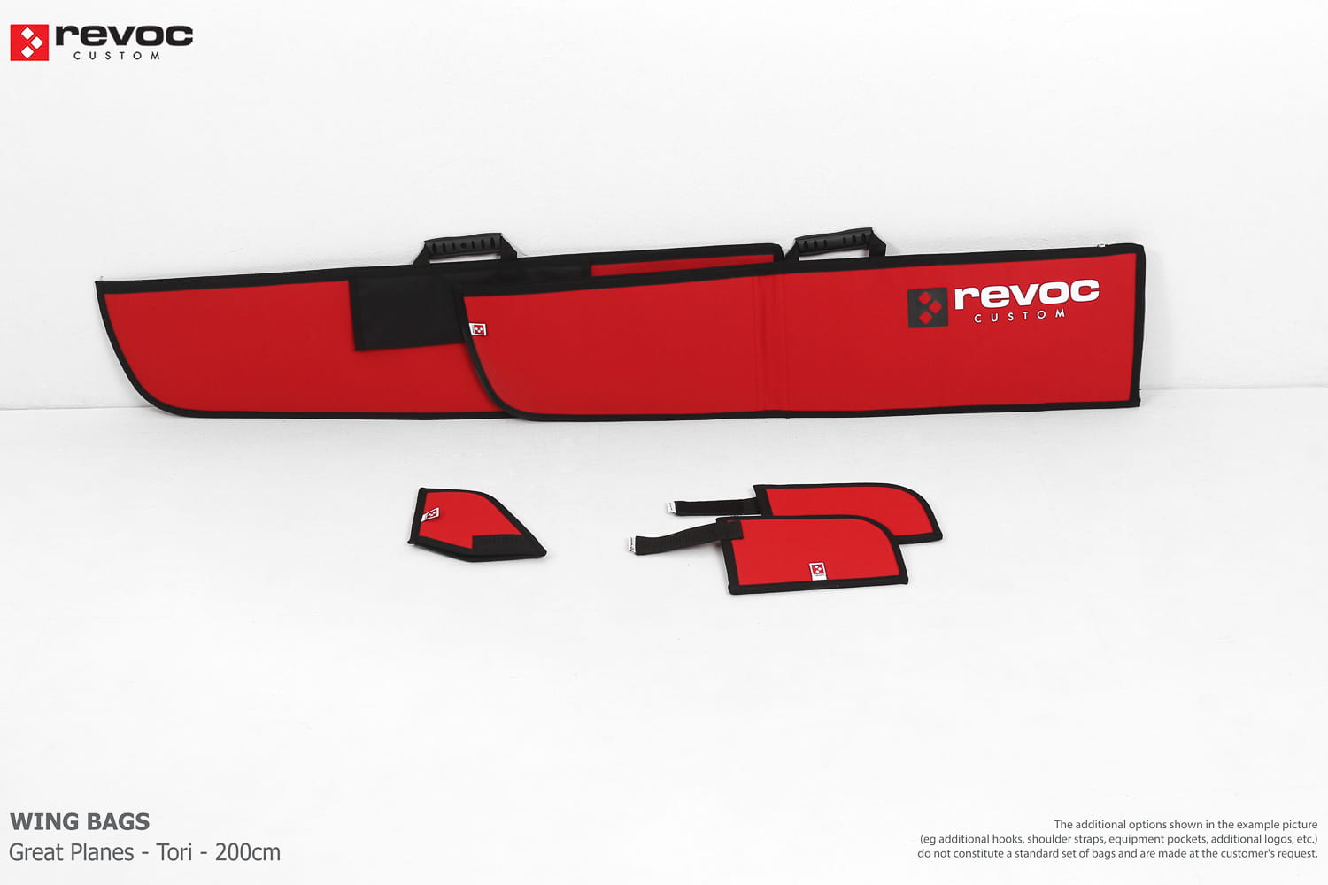 We make bags especially for you on your individual order. You can decide on the colors, choose a logo, put the model name on the cover, additional markings or choose a number of useful additional options. The custom color scheme which is a detailed reproduction of the model's painting can be ordered individually - contact us for the offer: revoc@revoc.eu
