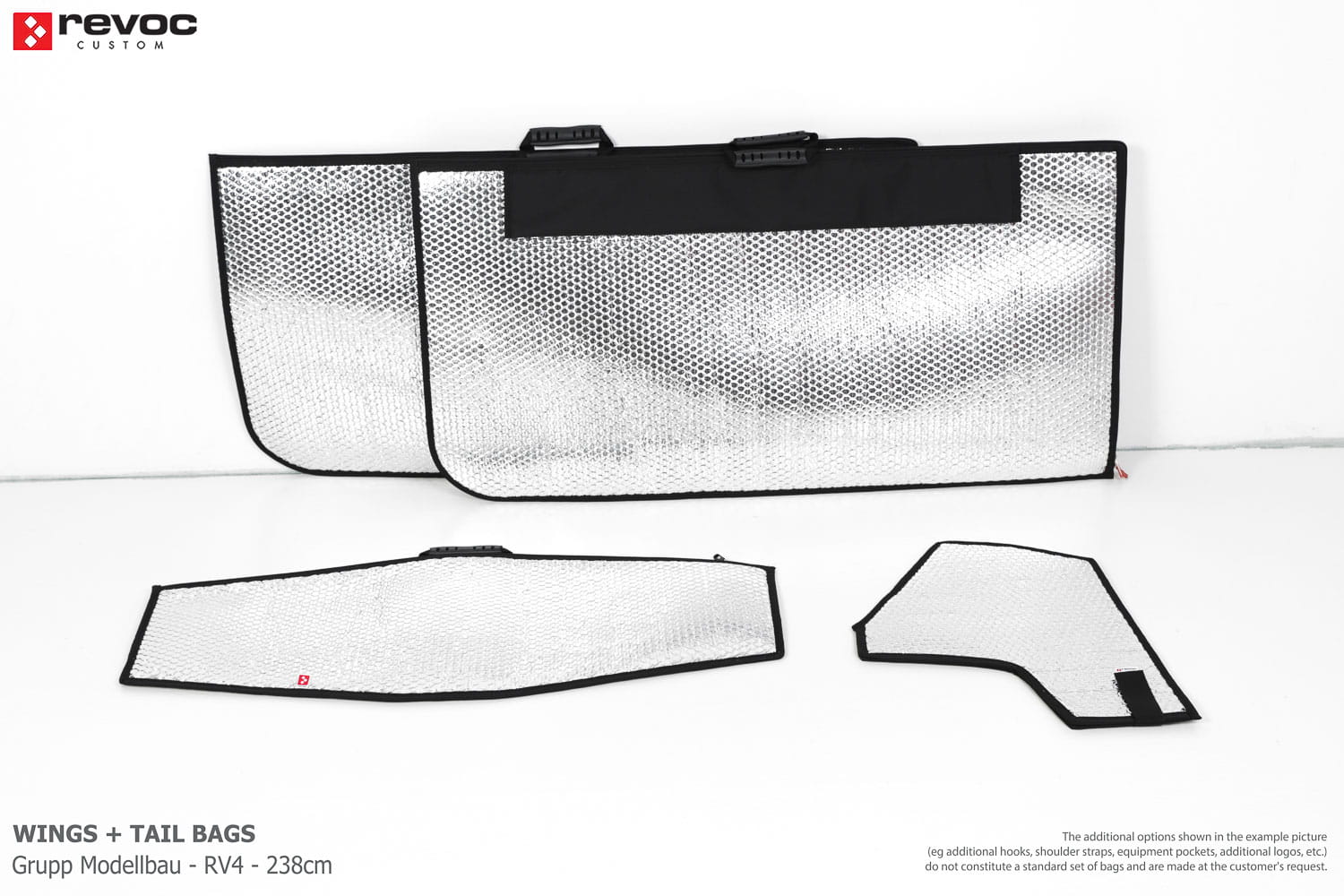 All REVOC bags are made especially for your model. They are completely tailored to the specific structure of your aircraft - regardless of whether it is a JET model, aerobatic model, glider or bi-plane model. Bags are made according to your comments, individual parameters and wishes. Please write your additional comments and wishes in the COMMENT section or send them directly to the e-mail revoc@revoc.eu after placing the order.