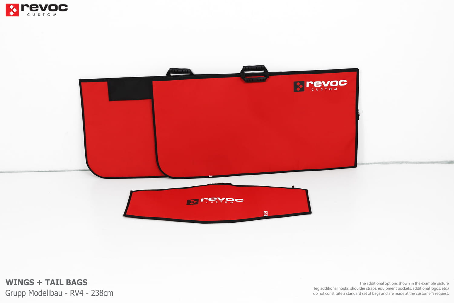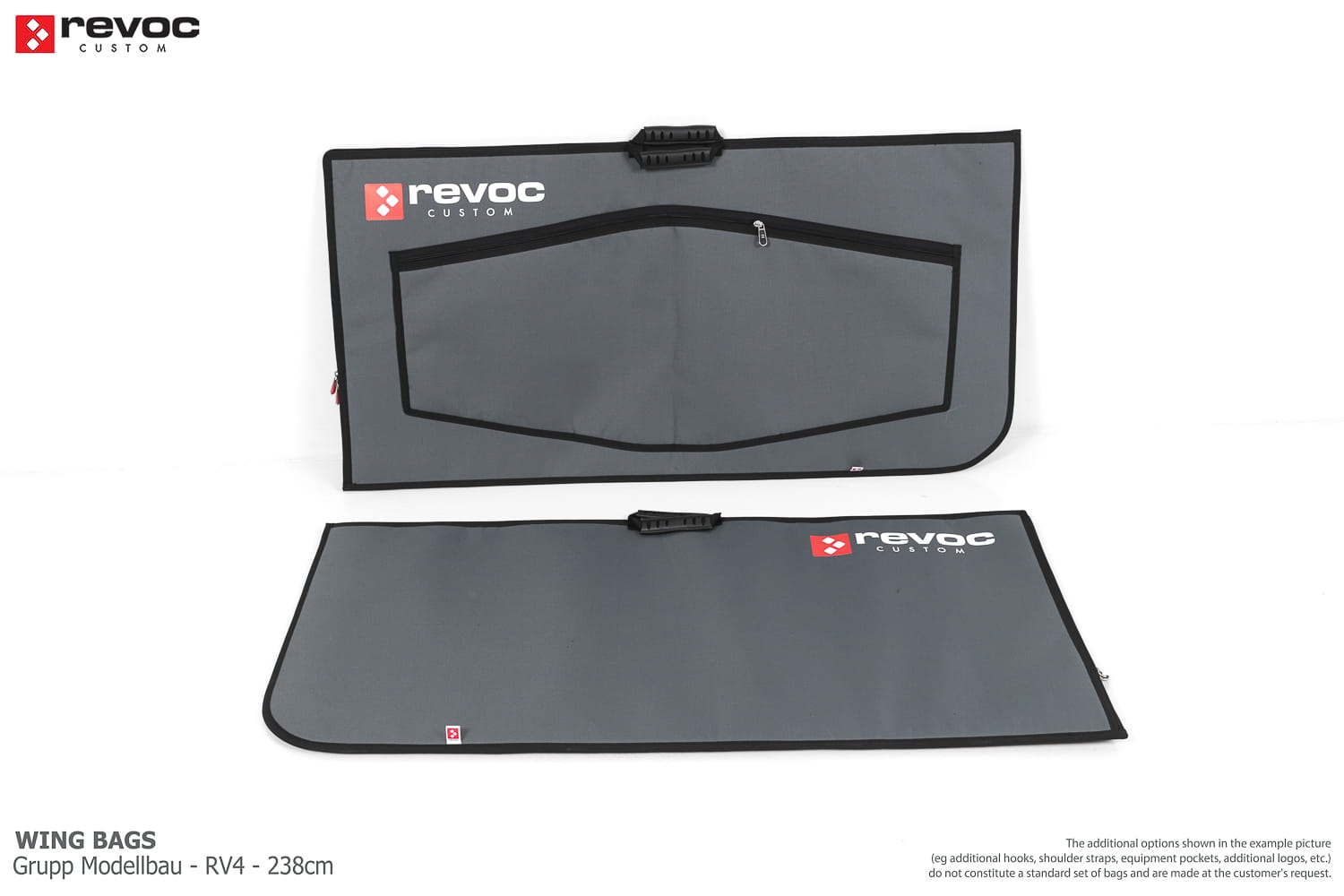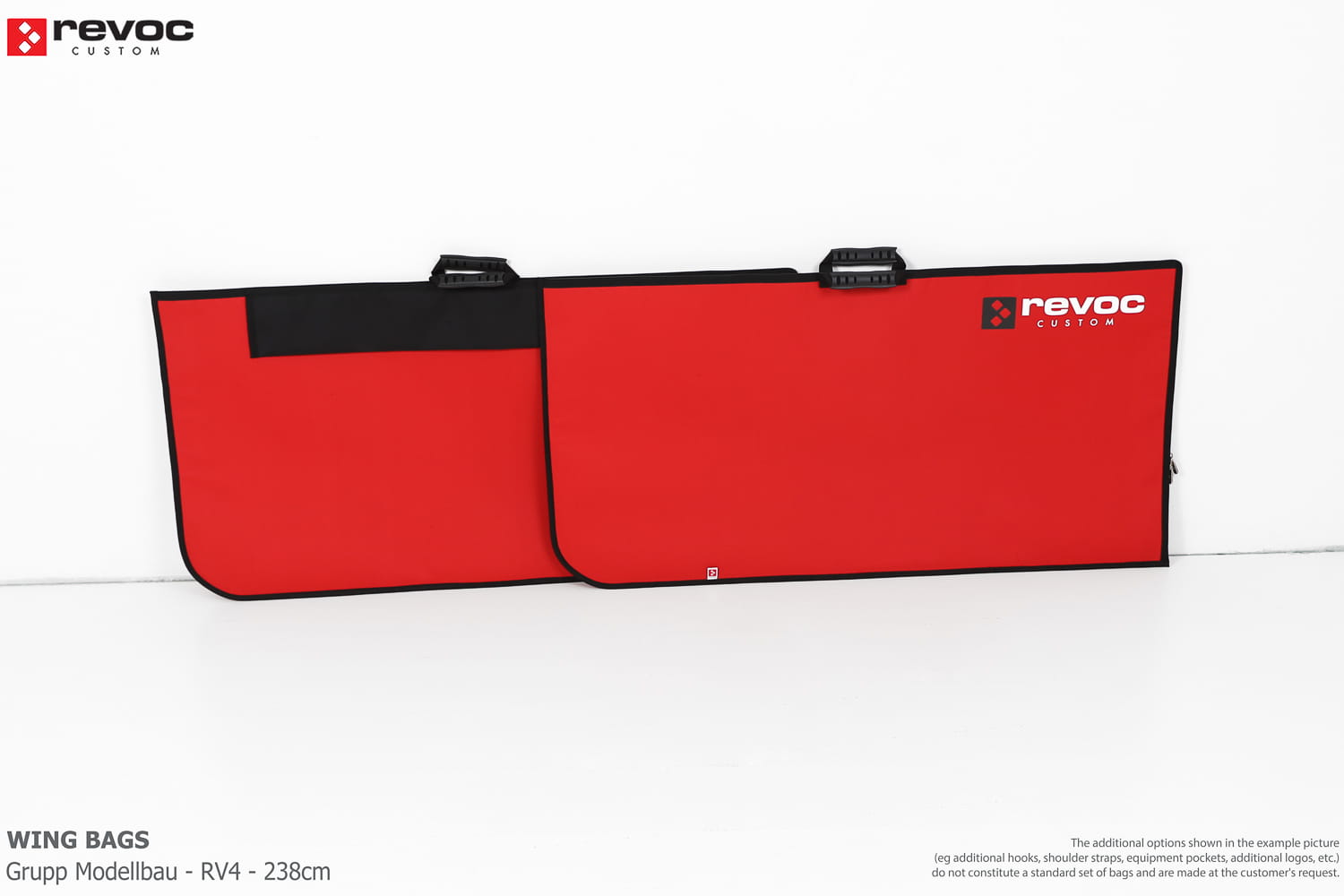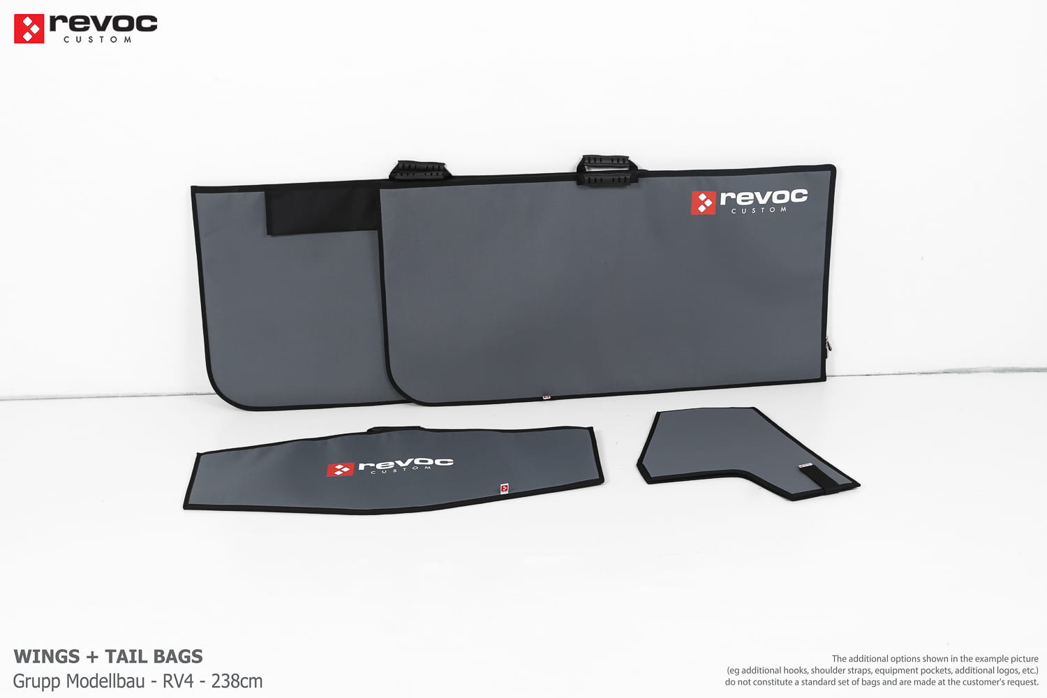 We make bags especially for you on your individual order. You can decide on the colors, choose a logo, put the model name on the cover, additional markings or choose a number of useful additional options. The custom color scheme which is a detailed reproduction of the model's painting can be ordered individually - contact us for the offer: revoc@revoc.eu
