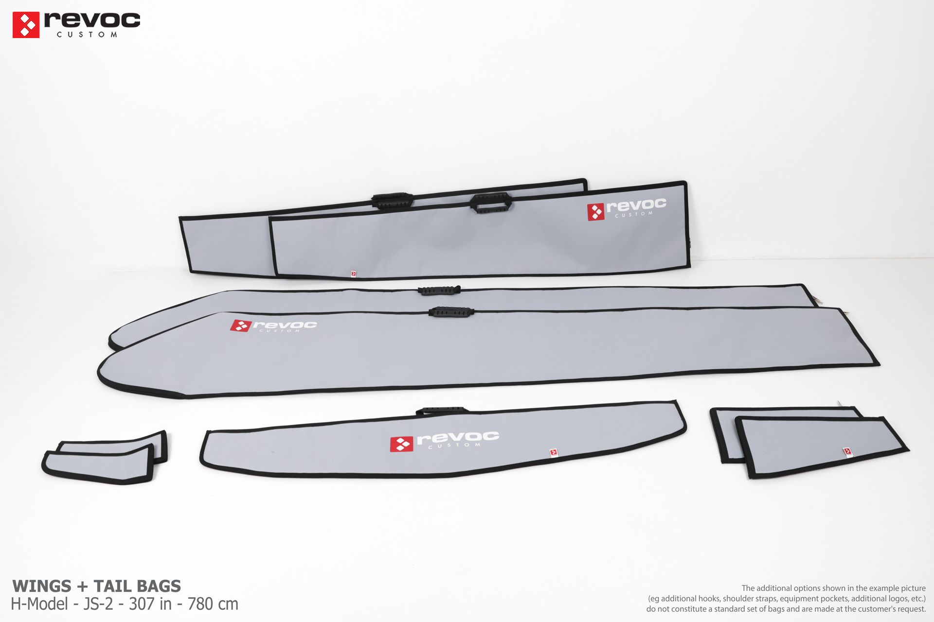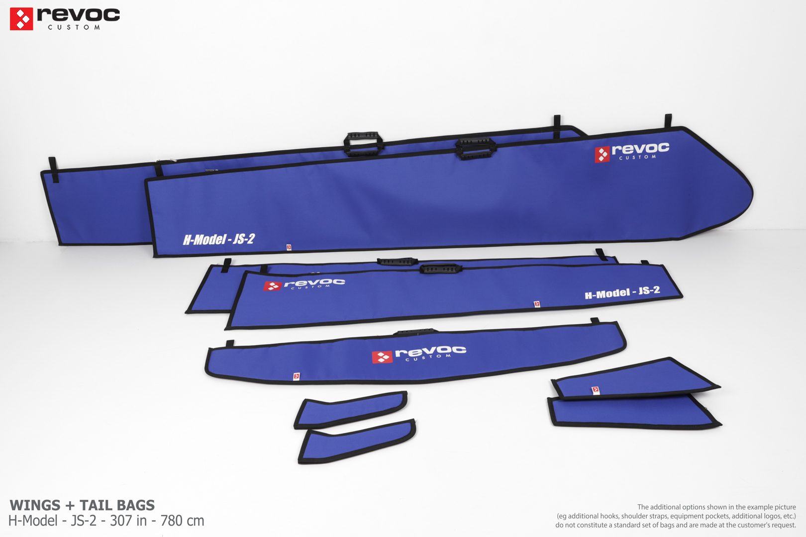 We make bags especially for you on your individual order. You can decide on the colors, choose a logo, put the model name on the cover, additional markings or choose a number of useful additional options. The custom color scheme which is a detailed reproduction of the model's painting can be ordered individually - contact us for the offer: revoc@revoc.eu