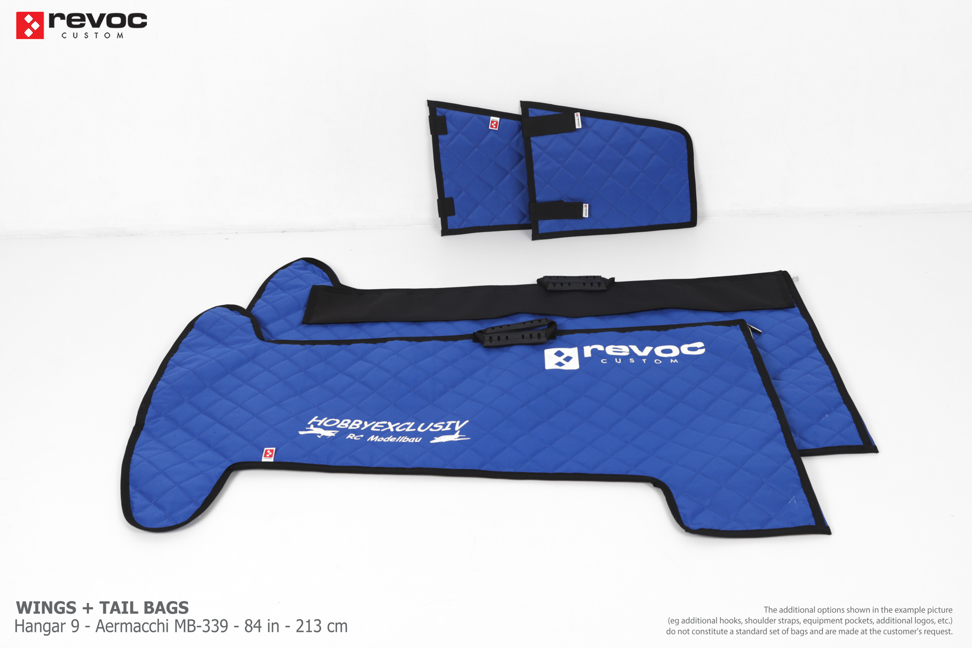 All REVOC RC bags are custom-made specifically for your model. Whether you have a jet, aerobatic aircraft RC, glider, or bi-plane RC model, our wing bags are completely tailored to fit the unique structure of your remote control planes. Each wing bag is crafted according to your individual preferences, parameters, and special requests. Please include any additional comments or wishes in the COMMENT section when placing your order, or email them directly to revoc@revoc.eu for a fully personalized wing bag RC experience.
