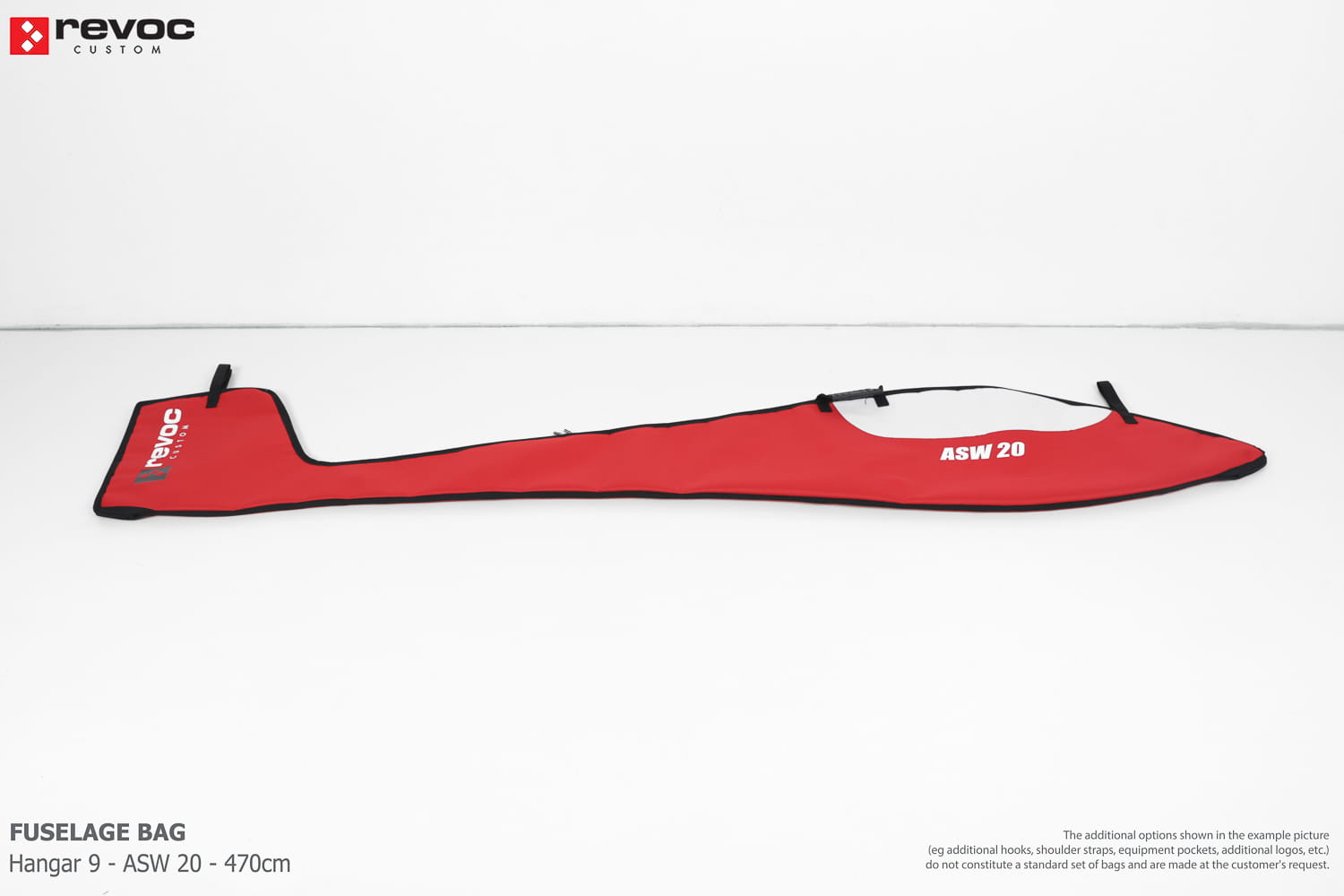 We make bags especially for you on your individual order. You can decide on the colors, choose a logo, put the model name on the cover, additional markings or choose a number of useful additional options. The custom color scheme which is a detailed reproduction of the models painting can be ordered individually - contact us for the offer: revoc@revoc.eu
